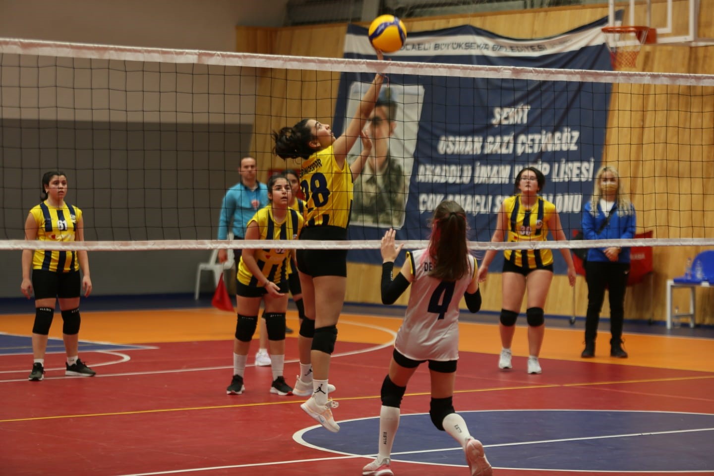 21 branşta binlerce sporcuya hizmet veren Derincespor Kulübü, voleybol branşında da mücadelesini sürdürüyor. Derincespor’un Midi Kız A ve C takımları karşı karşıya geldi. Şehit Osman Gazi Çetingöz Anadolu İmam Hatip Lisesi Spor Salonu’nda oynanan müsabakayı Derince Belediye Başkanı Zeki Aygün de takip etti. İki takımın zorlu mücadelesine sahne olan karşılaşmayı Derincespor Midi Kız A takımı 25-21, 25-23 ve 25-12’lik setlerle 3-0 kazanmayı başardı. Müsabakanın ardından açıklama yapan Başkan Aygün, “Derincespor Midi Kız A ve C voleybol takımlarımız arasındaki karşılaşmayı takip ettik. Midi C takımımızı mücadelelerinden dolayı tebrik ediyor, Midi A takımımıza final müsabakalarında başarılar diliyorum” dedi.