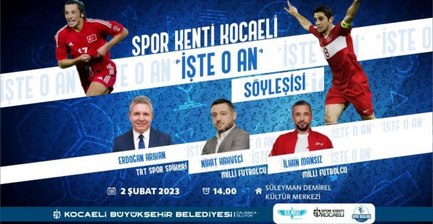 Kocaeli Büyükşehir Belediyesi Gençlik ve Spor Hizmetleri Dairesi Başkanlığı Spor Şube Müdürlüğü tarafından düzenlenecek söyleyişinin moderatörlüğünü TRT Spor Spikeri Erdoğan Arıkan üstlenecek. Milli futbolcumuz Nihat Kahveci, Türkiye’de Beşiktaş formasını uzun yıllar terletirken, yurt dışında ise İspanya La Liga ekiplerinden Real Sociedad ile Villarreal takımlarında oynadı. Yine Milli Takımda unutulmaz goller atan İlhan Mansız, Türkiye’de Beşiktaş, yurt dışında ise Japon takımı Vissel Kobe ve Alman Bundesliga ekibi Hertha Berlin’de top koşturdu. Jübile yaptıktan çeşitli takımlarda sonra yardımcı antrenörlük de yapan Kahveci ve Mansız, hem Türkiye’de oynadıkları takımlarda hem de yurt dışındaki liglerde yaşadıkları ‘’o anları’’ anlatacak.