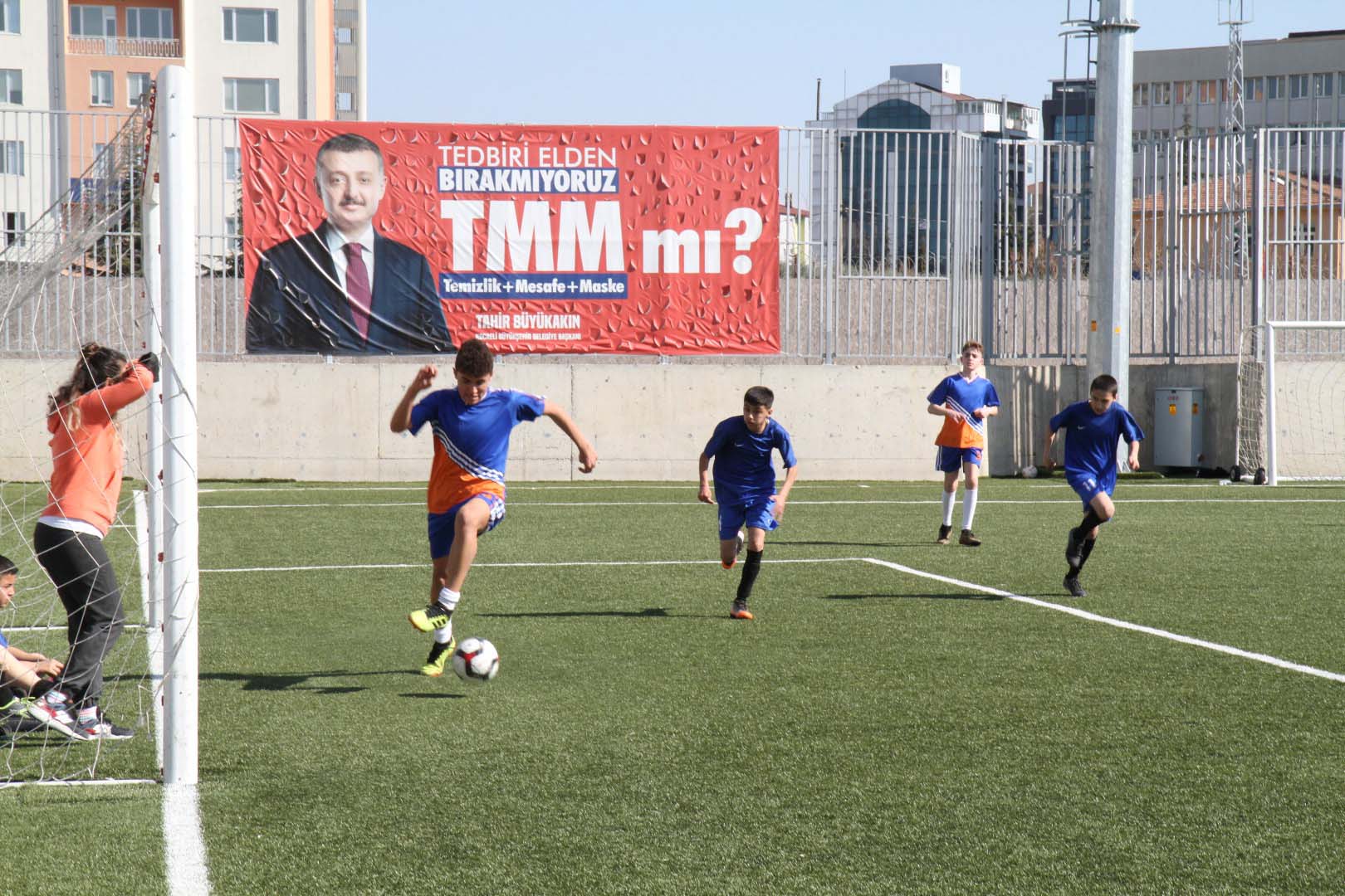 Başkan Büyükakın’ın temizlik, mesafe, maske kuralına dikkat çeken pankartı ile sporcu, antrenör ve hakemlere başarılar dileyen pankartın da yer aldığı Metin Oktay Stadı’nda futbolun tüm güzelliklerini yaşayan Gebzeli çocuklar, spor ve sporcunun dostu olan Tahir Başkan’a teşekkür etmeyi ihmal etmiyor.