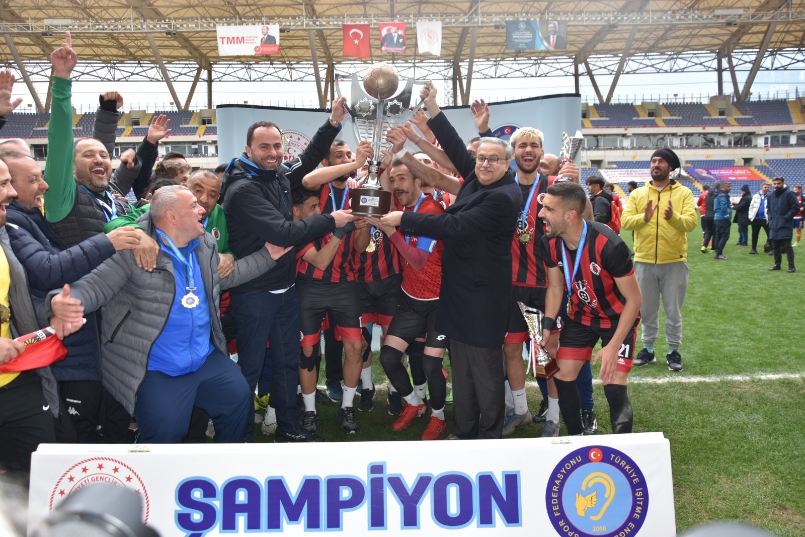 Geçen yıl da şampiyonluk kupasını kaldıran Gölcük İşitme Engelliler Spor Kulübü, 4-1 kazandığı maçın ardından düzenlenen törenle şampiyonluk kupasını aldı. Kupa ve madalyalarını alan Gölcüklü oyuncular, büyük sevinç yaşadılar.
