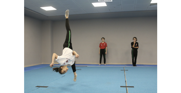 Üst üste iki kez Türkiye şampiyonu olup milli takıma seçilen sporcular, Kocaeli Stadı'ndaki salonda antrenör Akın Poyraz gözetiminde çalışmalarını sürdürüyor.