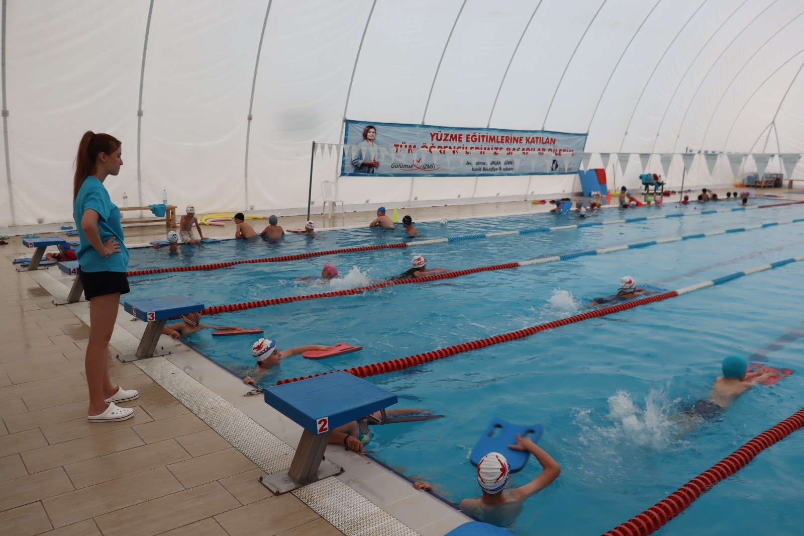 İlk derse katılan minik yüzücülerden Sinem Özden, "Burayı çok seviyorum. Çok güzel ve eğlenceli bir yer. Gelirken bile çok keyif aldım. Arkadaşlarımla olmaktan çok mutluyum. Burada değişik stillerde yüzmeyi öğreniyorum" dedi.