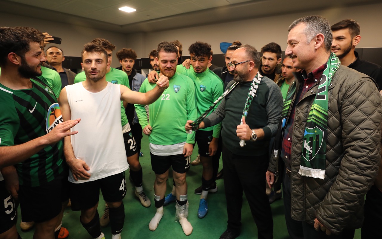 Taraftarlara “Kocaelispor’un arkasında durmaya devam etsinler” diyerek de seslenen Başkan Büyükakın, “Kocaeli, hep birlikte Kocaelispor ile birlikte bir marka olma yolunda emin ve kararlı adımlarla ilerliyor. Bütün kenti bu davanın arkasında kenetlenmeye davet ediyorum. Buraya gelenlere de ayrı ayrı teşekkür etmek istiyorum” dedi. ‘Takımı nasıl buldunuz ve maçı nasıl değerlendiriyorsunuz’ sorusuna ise Başkan Büyükakın, “Ben takımı birkaç maçta izleme imkânı bulamamıştım. Eskiye oranla kıyasladığım zaman çok daha iyi bir takım gördüm. Hatta zamanı da düşünen stratejik birtakım hamleler yapan, oyunu duraklatan ve hızlandıran başka bir takım vardı bugün sahada. Ben yeni hocamıza da buna katkısı olan tüm oyuncularımıza da tek tek teşekkür etmek istiyorum. İnşallah bu sene bu iş tamam” diyerek sözlerini tamamladı.