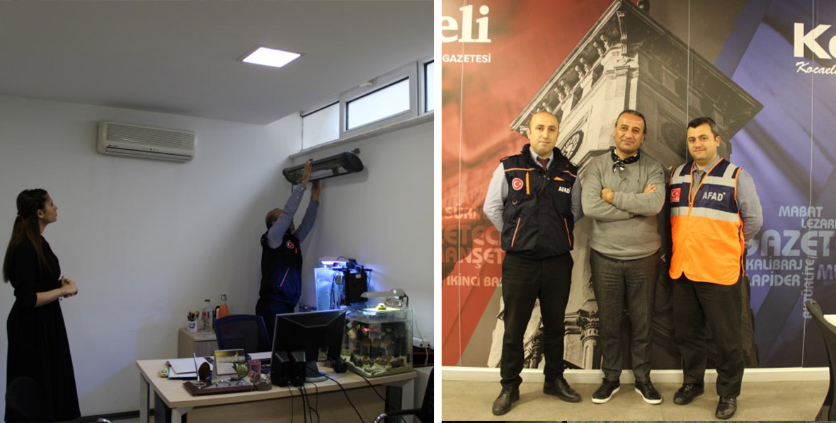 Tema kapsamında İlimizdeki basın ofislerinde tehlike avı yapan Kocaeli AFAD uzmanları Hüseyin Çakırca ve Bekir Laz basın çalışanlarını bilgilendirdiler. Bina güvenliğinin yapısal ve yapısal olmayan iki yönü olduğunu, afet anında bina içinde oluşabilecek risklerin ortadan kaldırılması için alınacak küçük çaplı önlemlerin hayati değer taşıdığını hatırlattılar.