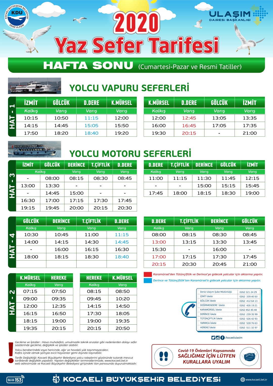 Yeni seferlerle birlikte 4 hat 90 sefer yaparak hizmet verecek. Seferler ile birlikte 2020 yılı yaz sefer tarifesi uygulanacak. Yeni seferler ile birlikte deniz ulaşımında koronavirüs salgını nedeniyle geniş güvenlik önlemleri alındı. Önlemlerin başında maske kullanımı, hijyen kuralları ve sosyal mesafe ön plana çıkıyor.