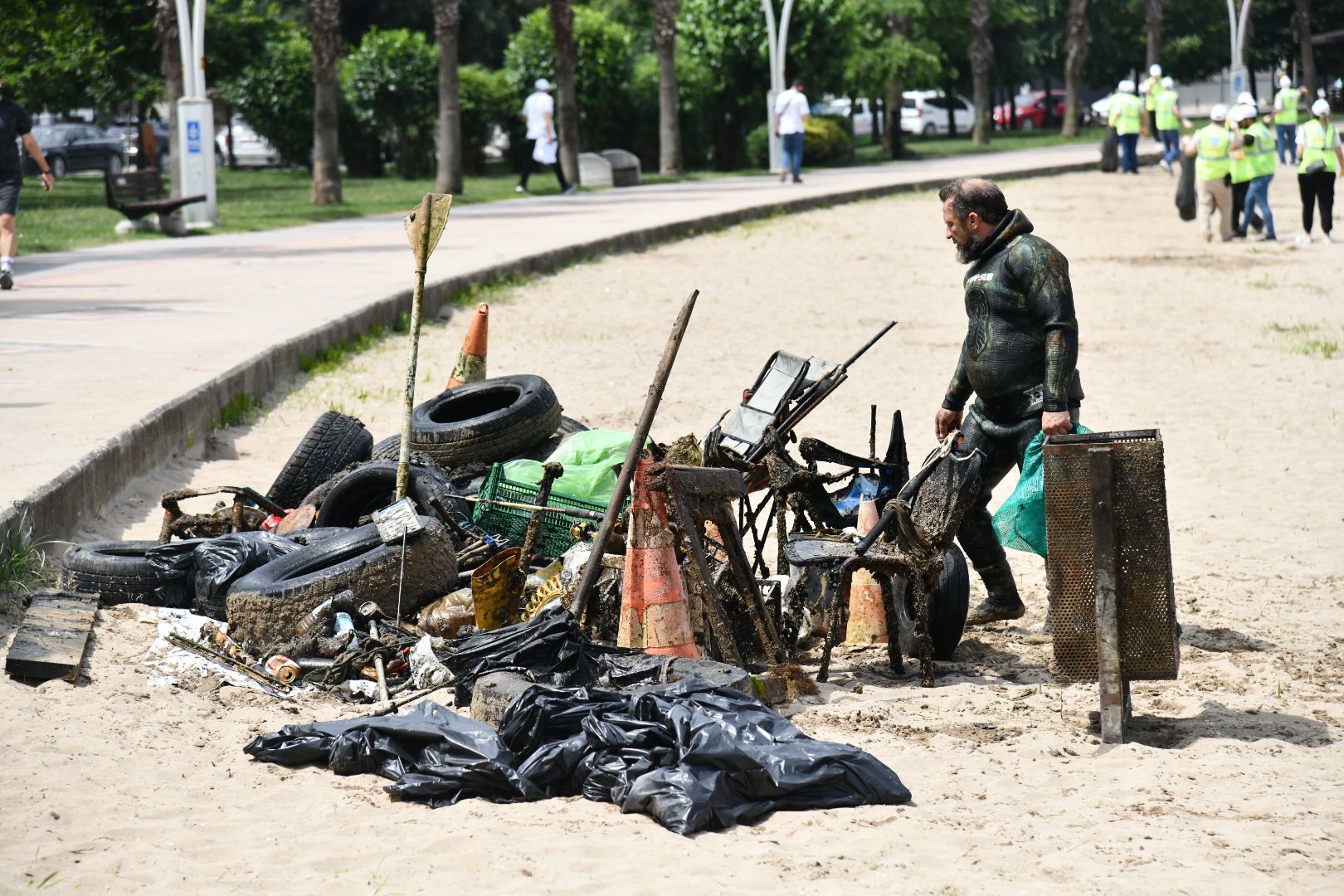 Kocaeli'nin Başiskele ilçesinde dalgıç ekibi eşliğinde deniz dibi temizliği yapıldı. Denizden çıkarılan araç lastikleri, kamp sandalyeleri ve plastik kasa gibi atıklar görenleri şaşırttı.