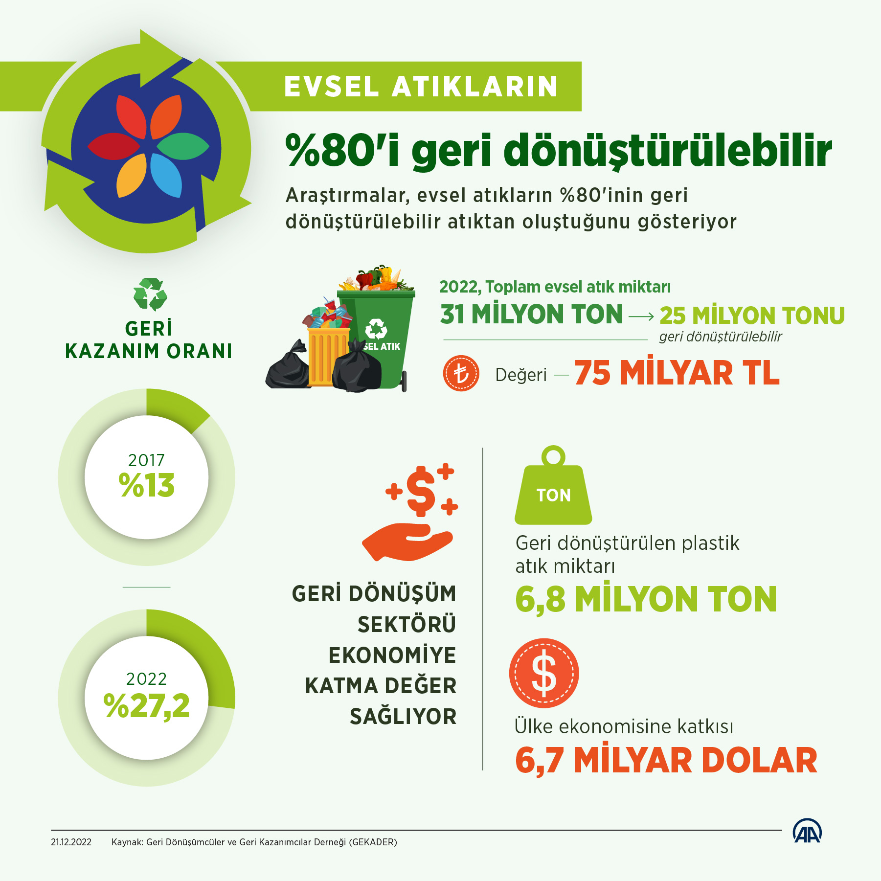 Evsel atıkların %80'i geri dönüştürülebilirAraştırmalar, evsel atıkların %80'inin geri dönüştürülebilir atıktan oluştuğunu gösteriyor. 22 Aralık 2022 Perşembe 10:21 Facebook'ta Paylaş Tweetle Google+ Paylaş