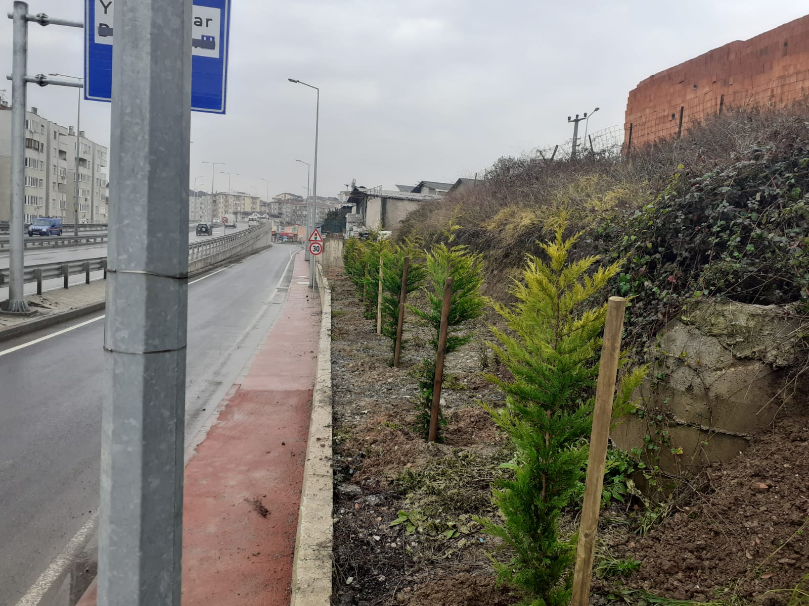 Çalışmalar kapsamında kaldırım kenarındaki beton duvarların arka kısımlarında taş ve dikenlikler temizlendi. Temizlik çalışmasından sonra alana toprak serildi. Toprak alana 51 adet Goldrider ile 20 adet Süs Elması fidanı dikildi.