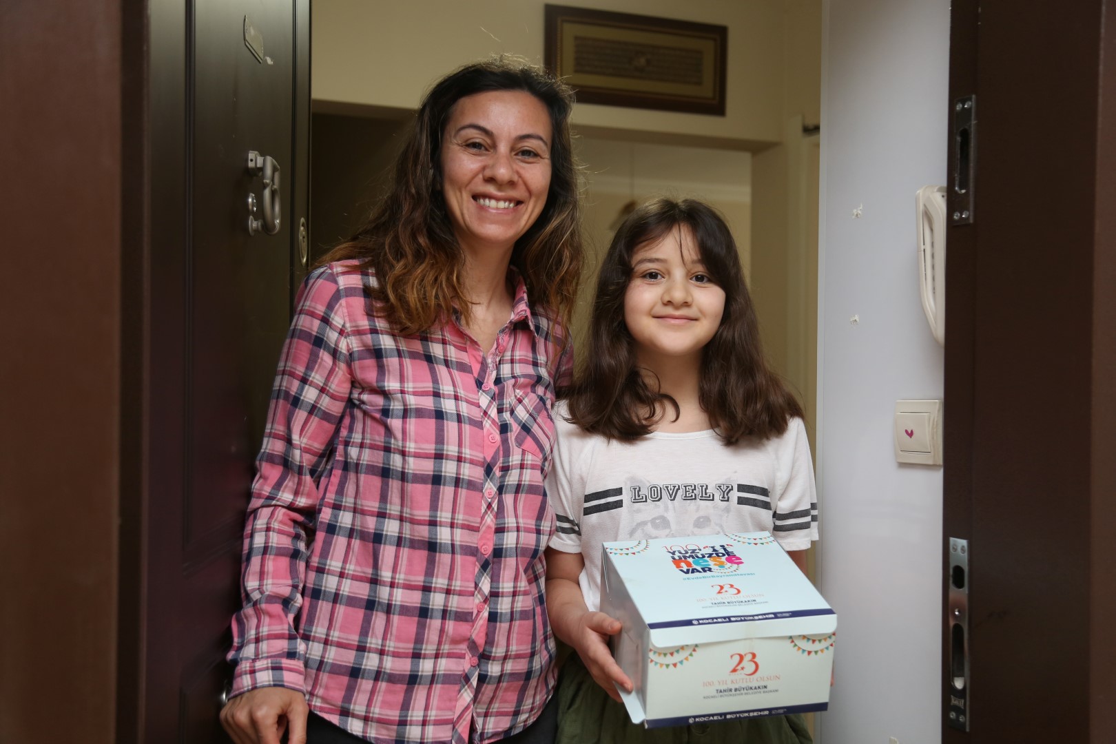 "Büyükşehir Belediyesi Kovid-19 salgını ve sokağa çıkma kısıtlaması nedeniyle 23 Nisan Ulusal Egemenlik ve Çocuk Bayram ile TBMM'nin 100. yılı olması hasebiyle sağlık çalışanlarına anlamlı bir sürpriz yaptı. Gece gündüz görev başında olan ve hastalığı bulaştırmamak için evlerine dahi gitmekten çekinen kahraman sağlık çalışanlarının çocuklarına Kocaeli Pastacılar Esnaf ve Sanatkarlar Odasının iş birliğiyle 100. yıl pastası gönderildi. Pastalar, Büyükşehir Belediye personeli ve palyaçolar tarafından Kocaeli'de görev yapan 4 bin 800 sağlık çalışanının evlerine kadar götürüldü. Görev başında olan sağlık çalışanlarının çocuklarına teslim edilen pastaların içerisinde Büyükşehir Başkanı Tahir Büyükakın'ın çocukların bayramını kutladığı tebrik kartı da yer aldı."