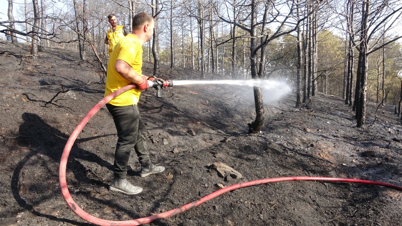Havadan ve karadan 2 saatlik çalışmanın ardından yangın söndürüldü. Yangında 2 dönümlük alan kül olurken, kimsenin yaralanmaması teselli kaynağı oldu. Ekiplerin soğutma çalışmaları devam ediyor.