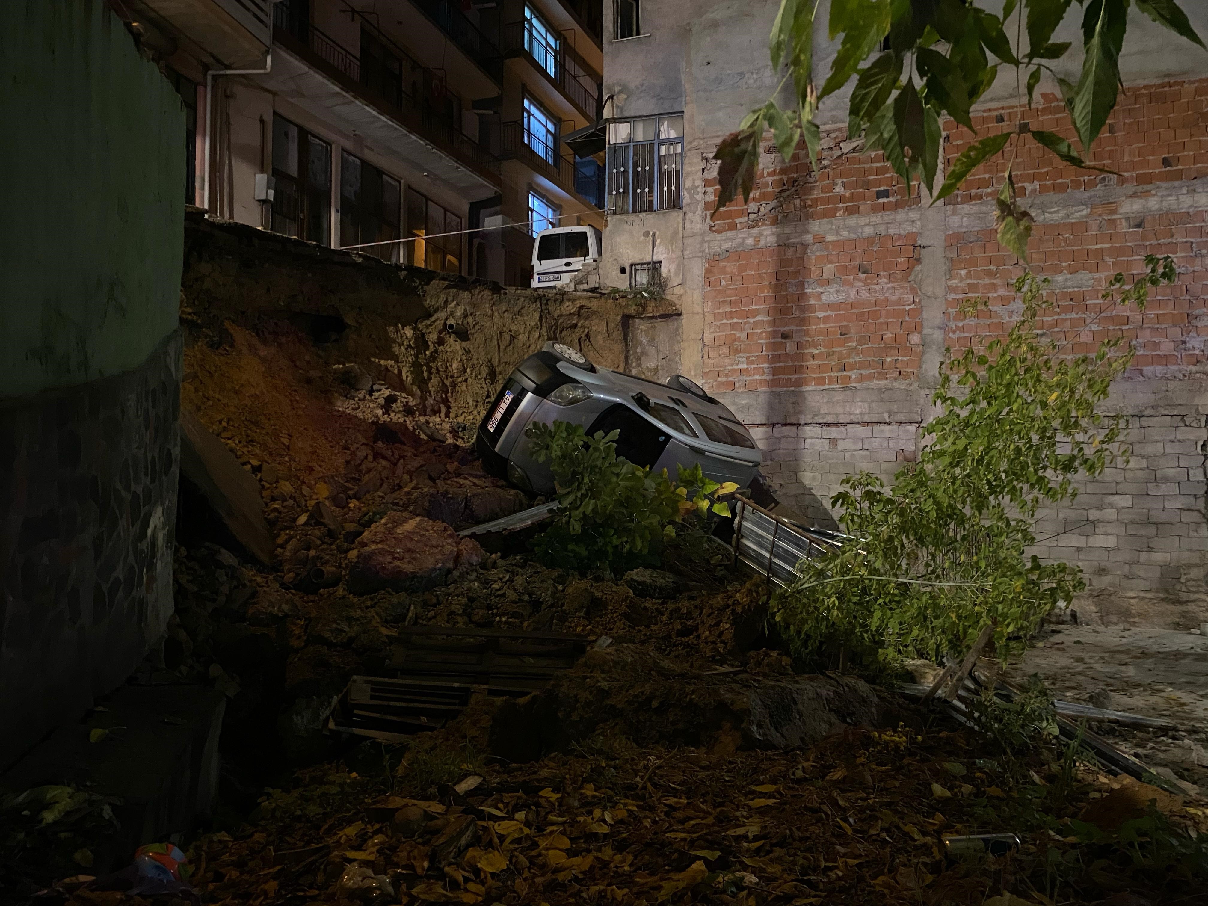 Olay, Bekirdere Mahallesi Sabır Sokak’ta meydana geldi. Edinilen bilgiye göre, inşaat temelinin üst kısmındaki duvar bilinmeyen bir sebeple çöktü. Park halindeki 41 LL 985 hafif ticari araç kayan toprakla birlikte inşaat temeline yuvarlandı. Bir bölümü çöken yol kullanıma kapandı. Gürültüyü duyan vatandaşlar ise panikle dışarıya çıktı. 112 Acil Çağrı Merkezine yapılan ihbar üzerine bölgeye itfaiye, AFAD ve polis ekipleri sevk edildi. İtfaiye ekipleri herhangi bir olumsuzluk yaşanmaması için şeritle bölgeyi kapattı. Çöken yolun yukarısındaki binalarda yaşayan vatandaşlar büyük korku yaşadı.