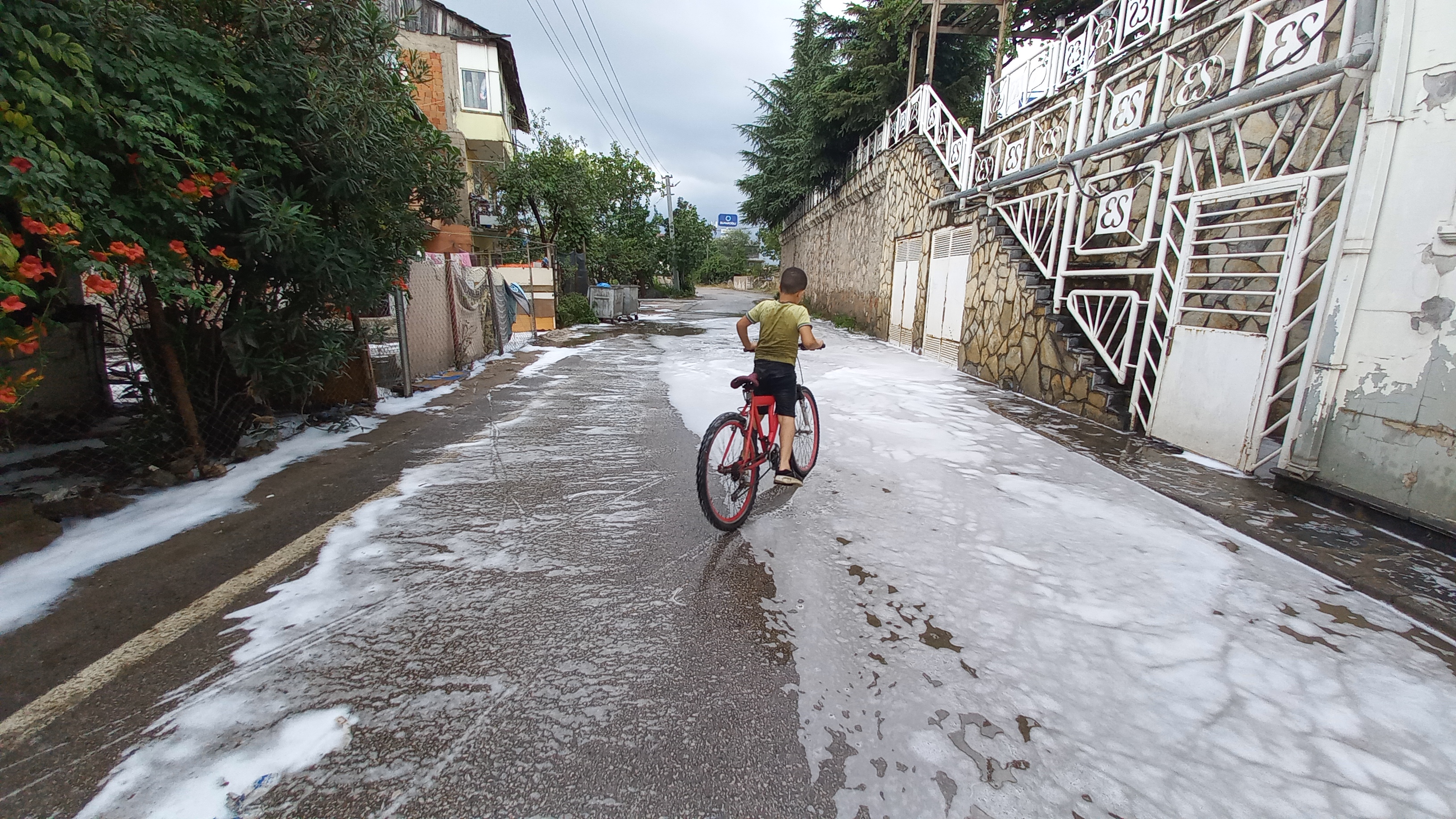 İzmit ilçesinde dün etkili olan sağanak sonrası sokak ve caddeler su içinde kaldı. Aniden bastıran yağmur hayatı olumsuz etkilerken, Sanayi Mahallesi Mezbaha Caddesi köpükle kaplandı. Caddede oluşan köpük baloncukları arasında araçlar ilerlemekte zorluk çekti. Aynı caddede bugün de manzara değişmedi. Yağmurun ardından caddeyi tekrar köpükle kaplandı. Köpüğün sebebi ise bilinmiyor.