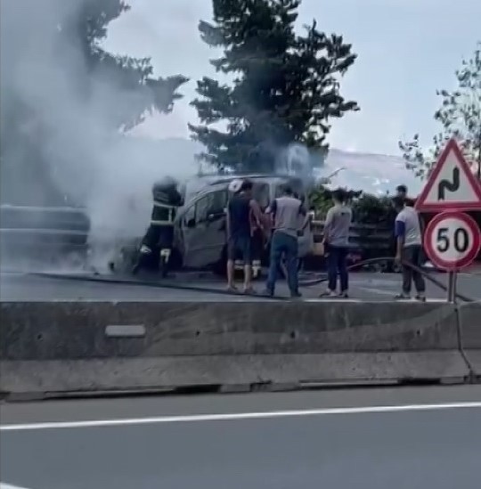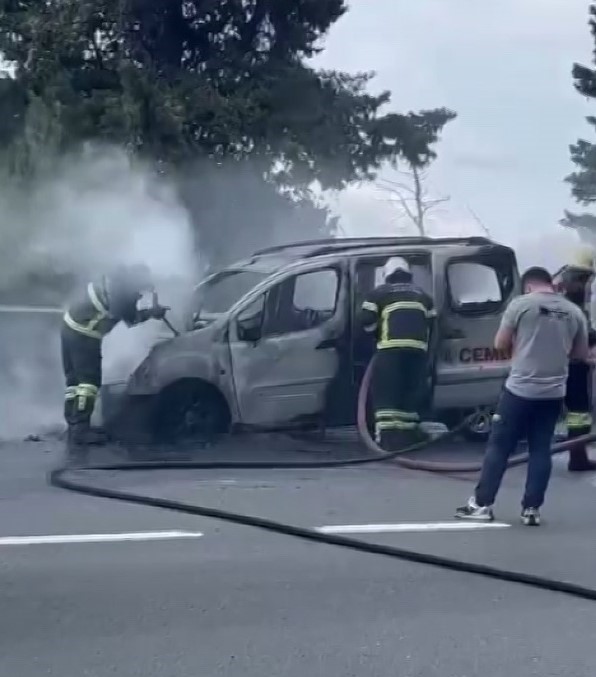 Olay, Kocaeli’nin Karamürsel ilçesi Ulaşlı mevkiinde meydana geldi. Edinilen bilgiye göre, seyir halindeki hafif ticari aracın kaputunda dumanlar yükseldiğini gören sürücü hemen sağ şeritte durdu. Araç alev alırken, sürücü araçtan çıkmayı başardı. Sürücü alevlere yangın söndürme tüpüyle müdahale etmeye çalışsa da başarılı olamadı. İhbar üzerine olay yerine itfaiye ve polis ekipleri sevk edildi. Kısa sürede olay yerine gelen itfaiye ekipleri, yangını söndürdü. Yangında yaralanan olmazken polis ekipleri olayla ilgili inceleme başlattı.