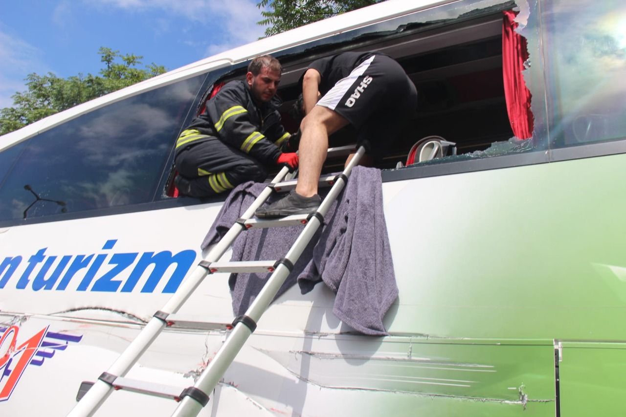 Kısa sürede olay yerine gelen itfaiye ekipleri, sıkışan yaralıları çıkarmak için çalışma başlattı. Otobüsten çıkamayan 20 yolcu, itfaiye ekipleri tarafından aracın ön camından kurtarıldı. Yolcu otobüsün sürücüsünün durumunun ağır olduğu öğrenildi. Kaza sebebiyle TEM Otoyolu İstanbul istikameti trafiğe kapatılırken, uzun kuyruklar oluştu. Ekiplerin olay yerindeki çalışması sürüyor.
