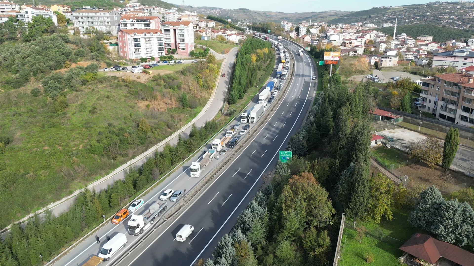 Öte yandan, Tem Otoyolu'nda oluşan araç kuyruğu dron ile görüntülendi.