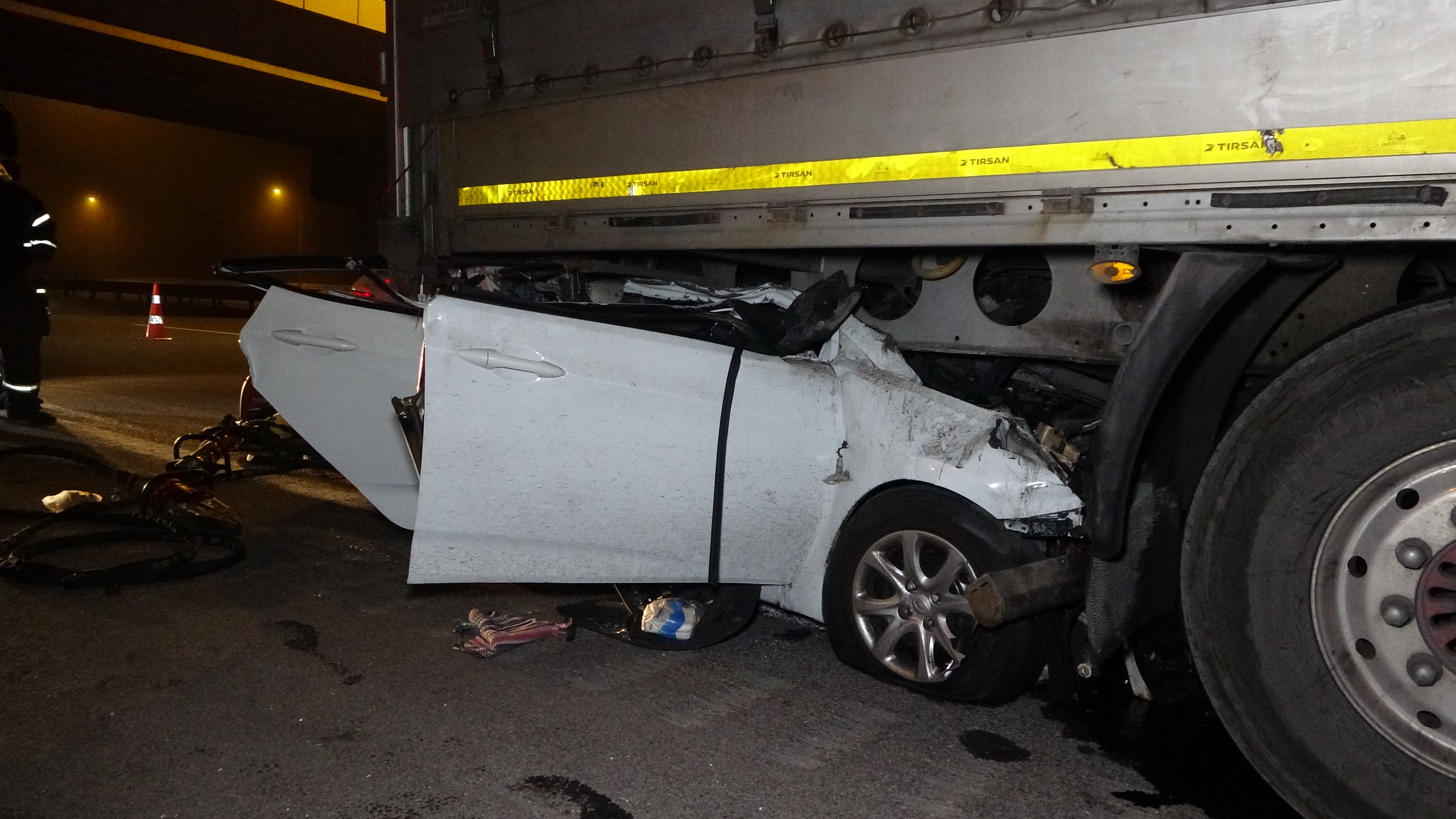 Kaza, Körfez ilçesi Kuzey Marmara Otoyolu Sevindikli mevkiinde meydana geldi. Edinilen bilgiye göre, Ankara istikametinde seyir halinde olan Ahmet Furkan Aytekin (24) idaresindeki 34 KK 5228 plakalı Hyundai marka otomobil, aynı yönde giden, Y.D. hakimiyetindeki 52 K 6062 plakalı Scania marka tıra arkadan çarptı. Çarpmanın şiddetiyle otomobil tırla birlikte 50 metre sürüklendi. Dorsenin altına giren otomobil adeta kağıt gibi ezildi. Tır sürücüsü kazayı 112 Acil Çağrı Merkezine ihbar verdi. İhbar üzerine adrese itfaiye, sağlık ve jandarma ekipleri sevk edildi. Sağlık ekiplerince yapılan tetkiklerde otomobil sürücüsü Ahmet Furkan Aytekin’in hayatını kaybettiği tespit edildi.