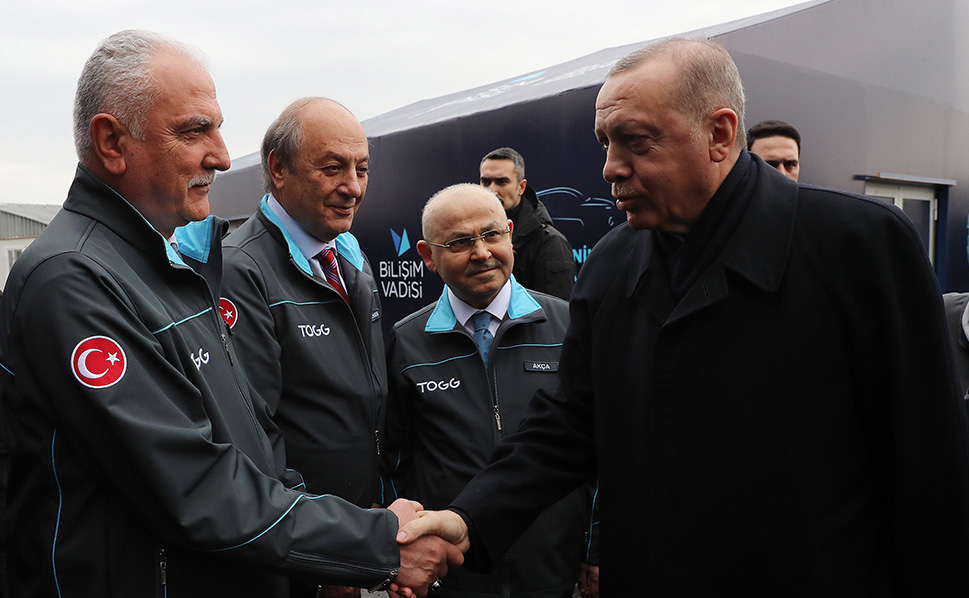 ürkiye Cumhurbaşkanı Recep Tayyip Erdoğan, Kocaeli'nin Gebze ilçesinde "Bilişim Vadisi"nin resmi açılış töreni ile Türkiye'nin yerli otomobilinin tanıtıldığı "Türkiye'nin Otomobili Girişim Grubu Yeniliğe Yolculuk Buluşması" programına katıldı. Törende Cumhurbaşkanı Erdoğan'ı TBMM Başkanı Mustafa Şentop ile Sanayi ve Teknoloji Bakanı Mustafa Varank,TOBB Başkanı Rifat Hisarcıklıoğlu, karşıladı.
