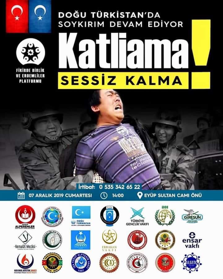 Çin Soykırımı Durdursun Doğu Türkistan da yıllardan beri Çin insan haklarını çiğnemekte Uygur Türkleri üzerinde sistematik soy kırım uygulamaktadır Hafta başında çoğunluğu Batılı ülkelerinin oluşturduğu 22 ülke Çin yönetimine ortak bir mektup göndererek Doğu Türkistan'daki toplama kamplarında zorla tutulan Uygurların derhal serbest bırakılması için çağrı yapmıştı. Mektupta devasa toplama kamplarındaki yasa dışı gözaltılardan ve diğer azınlıkların yanı sıra özellikle de Uygurları hedef alan yaygın izleme, gözetleme ve kısıtlamalardan derin endişe duyulduğu dile getirildi Çin yönetiminin Doğu Türkistan’da zulüm uyguladığını belirten Türkiye Çin’in Doğu Türkistan’da Uygurları eziyet ettiğine ilişkin ortak mektuba imza atan ülkeler arasında yer almaktadır. Türk Dünyası Gazeteciler Federasyonu olarak Türkiye’nin de imza attığı bu mektubu destekliyor insan hakları örgütlerini Çin’e baskı yapmalarını istiyoruz TDGF olarak bir kez daha güçlü bir sesle dünya kamuoyu önünde Çin’e sesleniyoruz Her milletin kendi inancı kültürü ve değerleri ile yaşaması ilahi ve doğal hakkı olduğu evrensel bir gerçektir. Hiçbir millet birlikte yaşadığı egemen milletin kültür ve inancını/dinini taklit etmeye zorlanamaz. Bu doğal ve ilahi bir kanundur ve her millet gibi Çin yönetimi de bu evrensel ilahi gerçeğe uymaya ikna ve mecbur edilmelidir. Her milletin kendi inanç ve kültürünü rahatça yaşadığı evrensel insanlık ailesi düzenine bütün insanlık ve devletlerin uyması ile savaşsız bir evrensel düzene geçilebileceğini kamuoyu İle paylaşıyor Çin’i insan haklarına saygılı olmaya davet ediyor, Uygur Türk kardeşlerimize yapılan insanlık dışı baskı ve soykırımın bir an önce son bulmasını istiyoruz.
