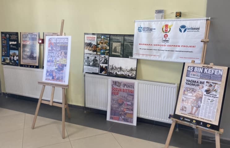 “…Kahramanmaraş merkezli asrın felaketi 6 Şubat depremlerinin 1.yıl dönümünde Gebze Alaattin Kurt Anadolu Lisesinde Kocaeli Büyükşehir Belediyesi Kent Konseyi ve TÜGVA işbirliğiyle Gazeteci Yazar İsmail Kahraman tarafından hazırlanan gazete manşetlerinden oluşan deprem sergisinin açılışı yapılarak akabinde de yine İsmail Kahraman tarafından hazırlanan Deprem Belgeselinin gösterimi yapıldı.