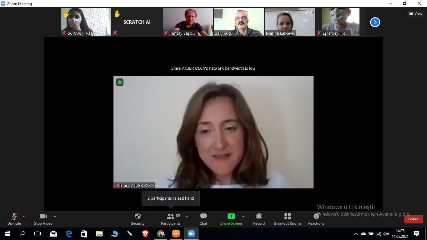 Emre hanım,konuşmasında örnek vererek yeni meslek dallarından bahsetti.Amerika’da marketlerde kasiyer yerine robotların olduğunu iletti.Özellikle Elon Musk’ın hayatını araştırmalarını tavsiye etti.Öğrenci sorularıyla devam eden program,Sırbistan’dan katılan öğretmenin uyguladığı Kahoot yarışmasıyla sona erdi.