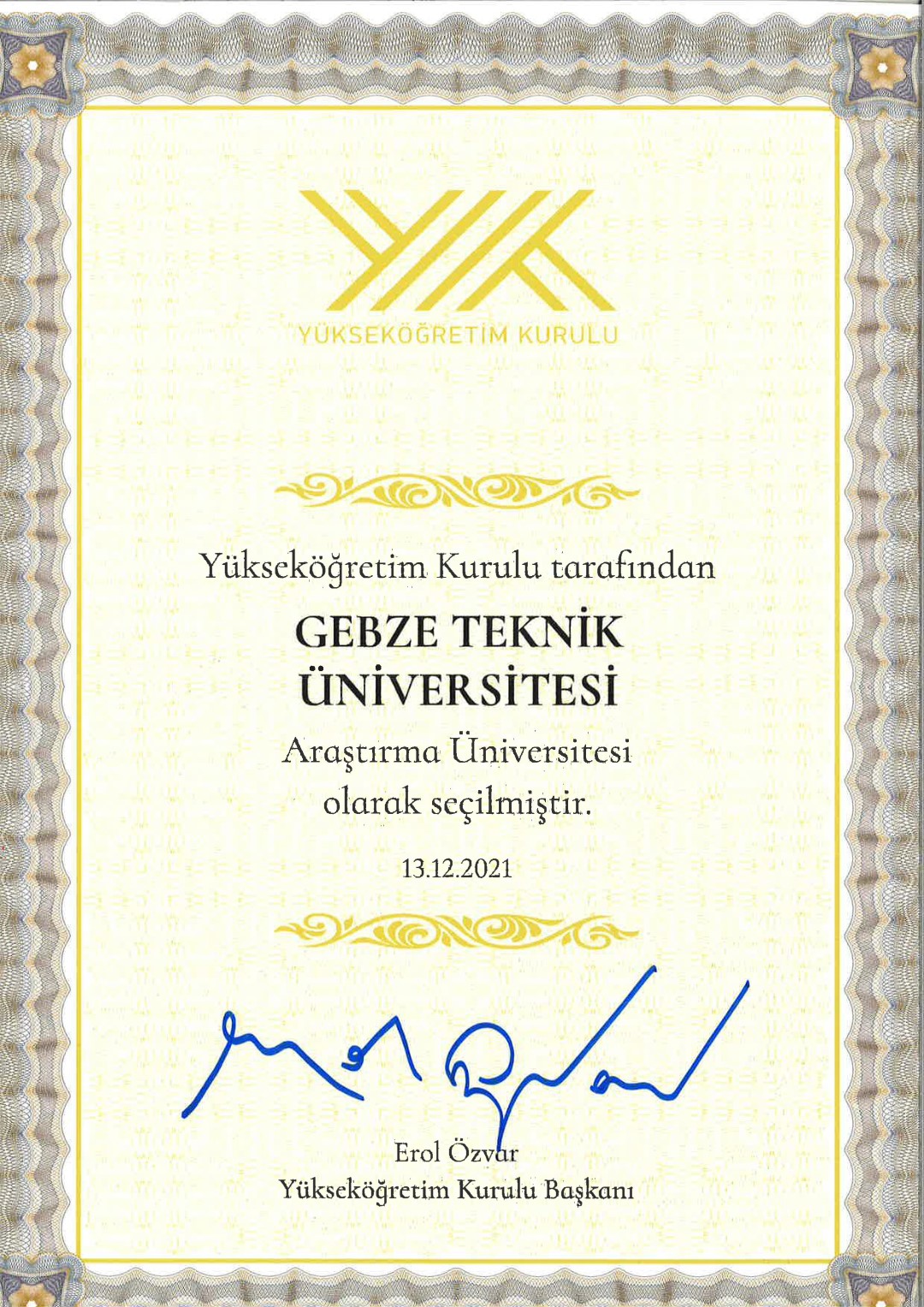 Yüksek kalitede eğitim ve ileri teknolojide araştırma kabiliyeti ile Türkiye’nin Araştırma Üniversitesi etiketinin sahibi Gebze Teknik Üniversitesi(GTÜ) ülkenin sayılı üniversiteleri içindeki yerini koruyor. Yükseköğretim Kurulu(YÖK) tarafından 2021 yılı Araştırma Üniversiteleri için uygulanan Araştırma Odaklı Misyon Farklılaşması programında GTÜ, 20 devlet ve 3 vakıf üniversitesi arasında ilk onda A2 grubu yüksek düzey araştırma performansı gösteren üniversiteler içinde gösterildi. YÖK tarafından Ankara Bilkent Otel’de “Araştırma Üniversiteleri Toplantısı” gerçekleştirildi. Sanayi ve Teknoloji Bakanı Mustafa Varank ve YÖK Başkanı Erol Özvar’ın ve katılımlarıyla gerçekleştirilen toplantıya, ilgili kurum başkanları, YÖK Üyeleri ile Araştırma Üniversitelerinin Rektörleri ve ilgili Rektör Yardımcıları katıldı. Toplantıda ilk olarak YÖK Yürütme Kurulu Üyesi Naci Gündoğan programa ilişkin bir bilgilendirme sunumu gerçekleştirdi.
