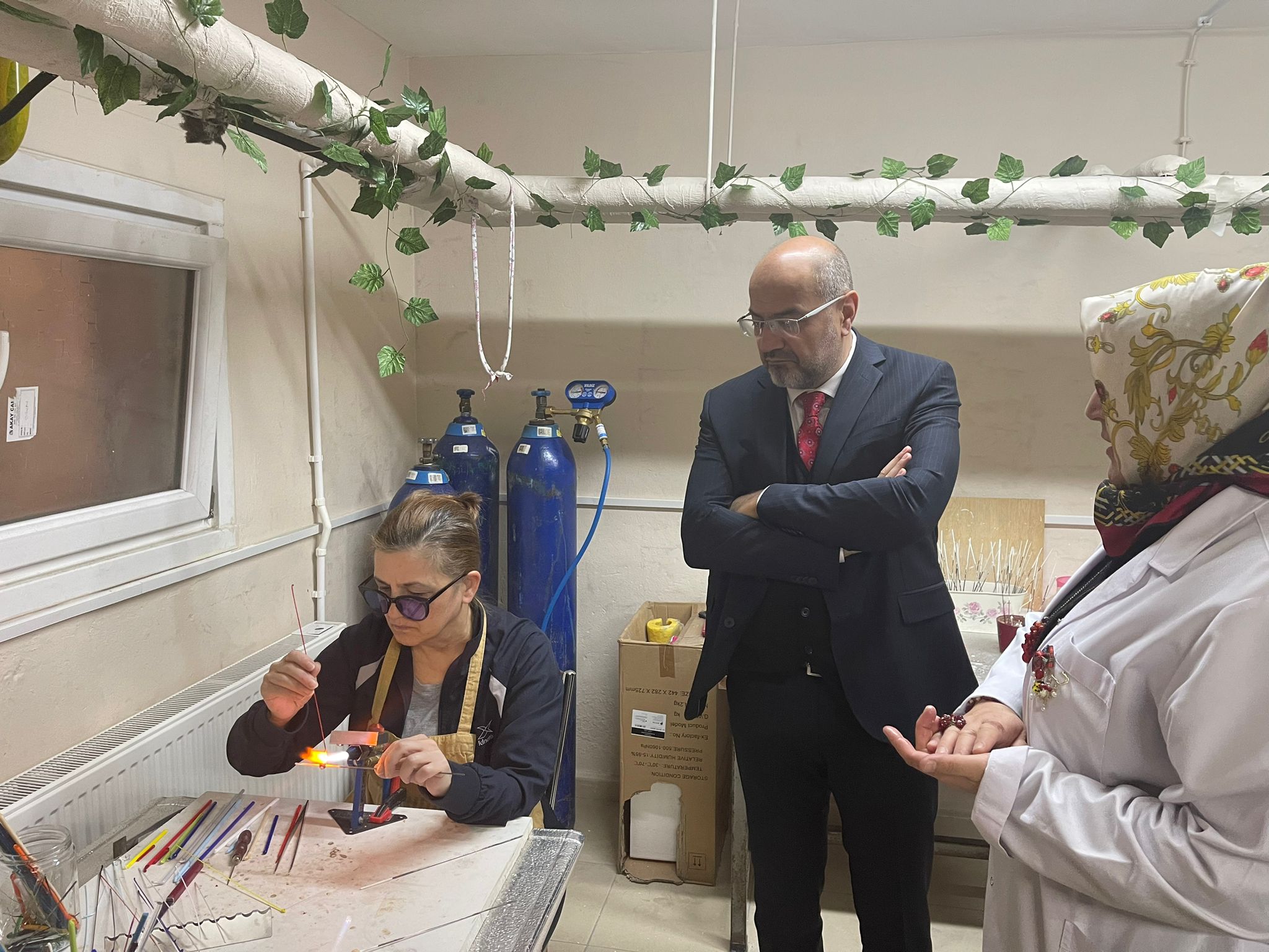Milli eğitim Bakanlığı Hayat Boyu Öğrenme Genel Müdürlüğü Araştırma Geliştirme ve Projeler Daire Başkanı Ebubekir AYDIN, Birleşmiş Milletler Kalkınma Programı temsilcileri ve İlçe Milli Eğitim Müdürü Şener DOĞAN "Fotovoltaik Güneş Panelleri Kurulumu Ve Hibrit (Güneş-Rüzgâr) Sisteme Entegrasyonu Kursu" ile diğer kurslara ziyarette bulundular.