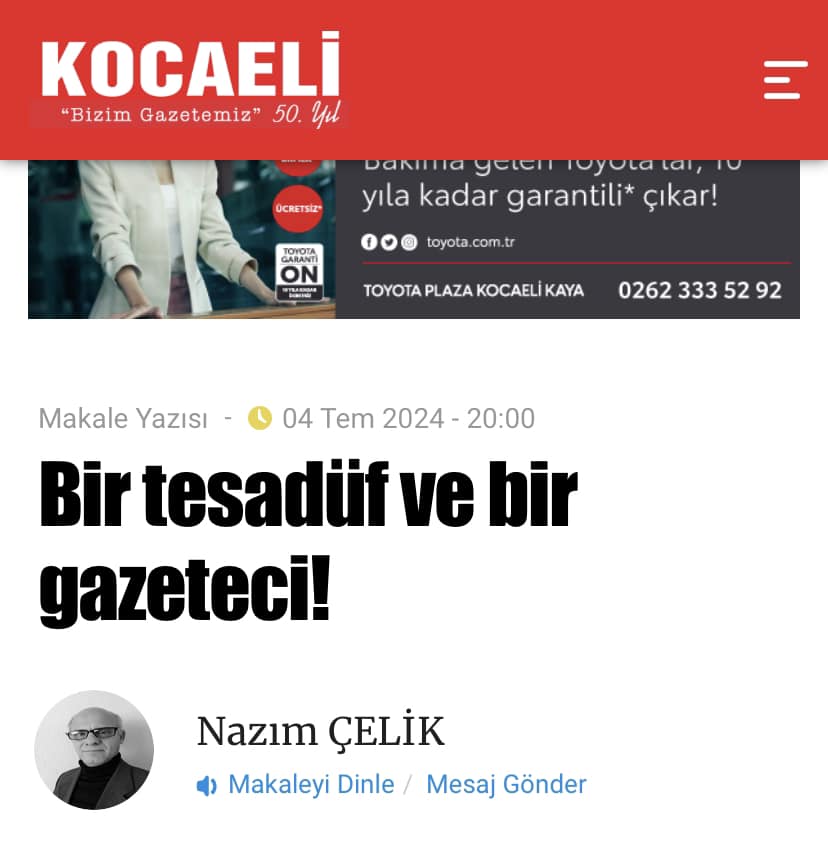 KOCAELİ GAZETESİ YAZARLARINDAN DUAYEN GAZETECİ VEFALI ARKADAŞIM NAZIM ÇELİK BEYE www.iktav.com KÜTÜPHANEMİZ HAKKINDA YAZDIĞI YAZI İÇİN TEŞEKKÜR EDER BAŞARILAR DİLERİZ
