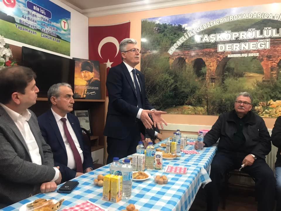 Gebze Taşköprülüler derneğinin şehitler için döktükleri lokma ikramı toplantısına katılan Ak Parti Kocaeli il Başkanı Mehmet Ellibeş beye Taşköprü bölgesinin bir zamanlar Gebze’ye bağlı nahiye merkezi olduğunu söyleyerek Taşköprü bölgesinin ilçe olması gerektiğini söyledim.
