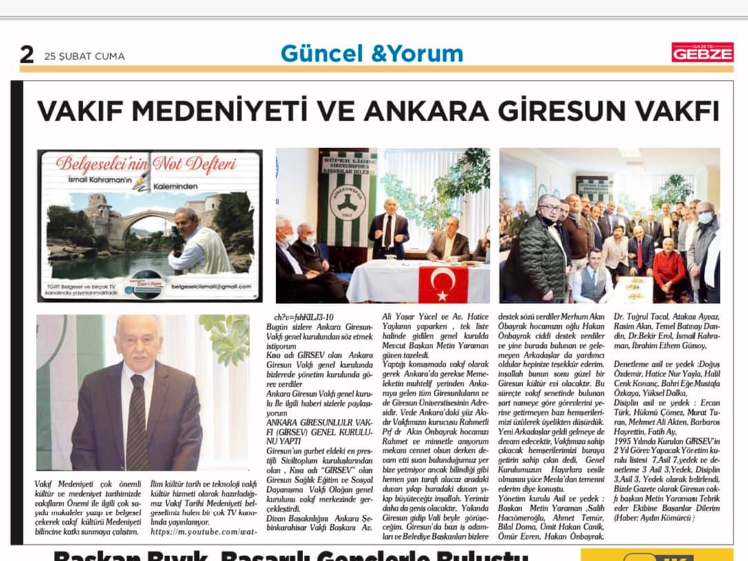 Ankara Giresun Vakfı genel kurulu İle ilgili haberi sizlerle paylaşıyorum.