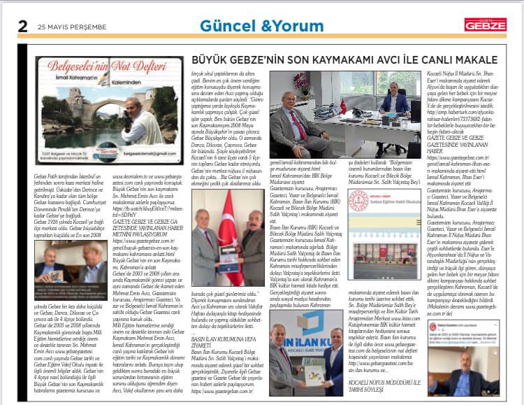 GAZETE GEBZE VE GEBZE GAZETESİNDE YAYINLANAN HABER METNİNİ PAYLAŞIYORUM