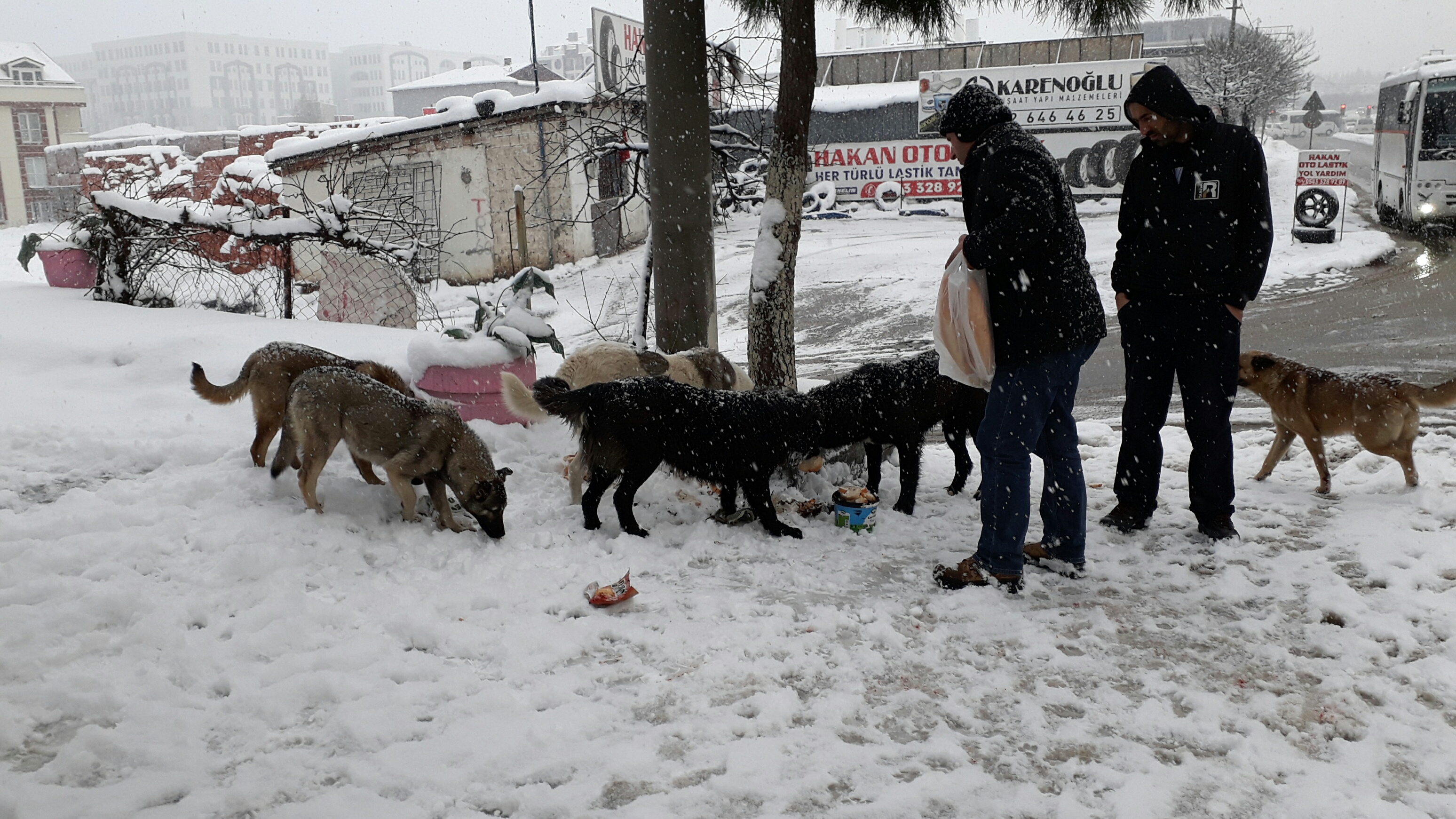 Kendisinin de köpeği olduğunu söyleyen Akpınar, "Köpekleri aç görünce dayanamadım. Eve giderken hem eve ekmek aldım hem de bu havada sokakta aç kalan köpeklere doyurayım dedim." şeklinde konuştu.