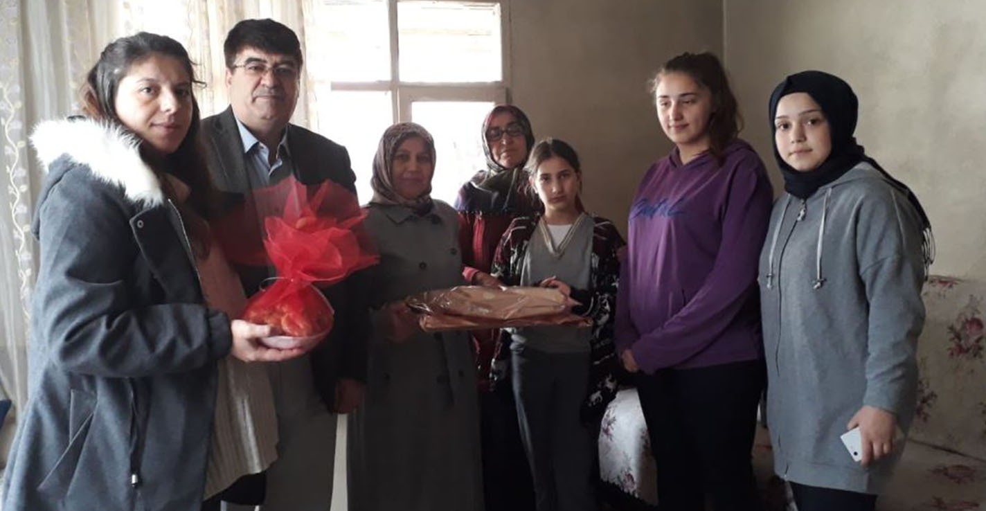 Çevremizde bulunan 58 yaşındaki Zahide Gül’e Güzellik ve Saç Bakımı Alanı öğrencileri tarafından kişisel bakım hizmetleri verilmiş, Grafik ve Fotoğrafçılık Alanı ve Moda Tasarımı öğrencilerinin hazırlamış oldukları seccade ve tabloyu hediye ettiler.