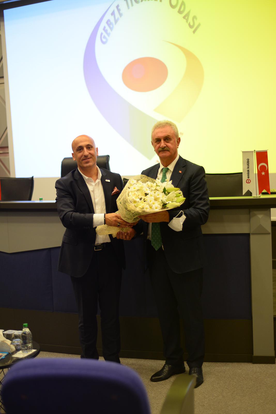 GTO Başkanı Nail Çiler’e destekleri için Emlak Kulübü Başkanı Fuat Özdağ çiçek takdim ederek teşekkür etti.