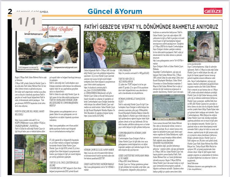 (Kaynak: Gebze Gazetesi www.gebzegazetesi.com 3 Mayıs 2020)