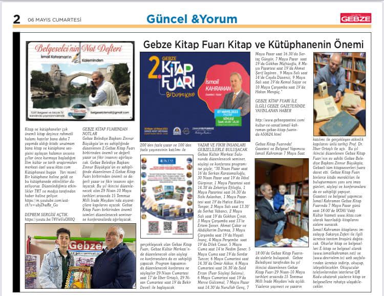 GEBZE KİTAP FUARI İLE İLGİLİ GEBZE GAZETESİNDE YAYINLANAN HABER