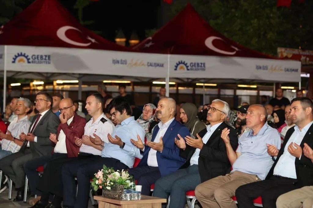 Değerli hemşerilerim unutmayalım Türk milleti her zaman iyi önder ile yola gidiyor. Bu nedenle emeği geçen devlet büyüklerine kahraman şehit ve gazilere dua etmeye devam edeceğiz’ cümlelerini kullandı. Konuşmaların ardından Güvenlik Stratejileri Uzmanı Mete Yarar 15 Temmuz Hain Darbe Girişiminin yaşandığı geceye ilişkin anekdotları ile katılımcılara bir söyleşi gerçekleştirdi. 15 Temmuz Gazisi Üzeyir Civan da o gece yaşananları Gebzelilerle paylaştı. Söyleşiler sonrası Gebze Kaymakamı Özyiğit ve Başkan Büyükgöz Yarar ve Civan’a teşekkür plaketi takdim etti. Program sanatçı Sedat Uçan’ın konseri ve demokrasi nöbetiyle son buldu.