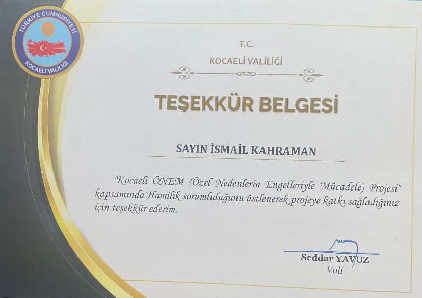 Törende biz de araştırmacı Gazeteci ve Devri Alem belgesel program yönetmeni olarak Seddar Yavuz tarafından Kocaeli tarih ve kültürünün tanıtılmasına katkılarımızdan dolayı teşekkür belgesi aldık.