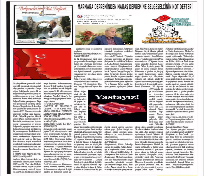 Gebze gazetesi www.gebzegazetesi.com ve www.gazetegebze.com.tr ile belgeselcininnotdefterinde 13 Şubat 2023 tarihinde yayınlanan makalemiz