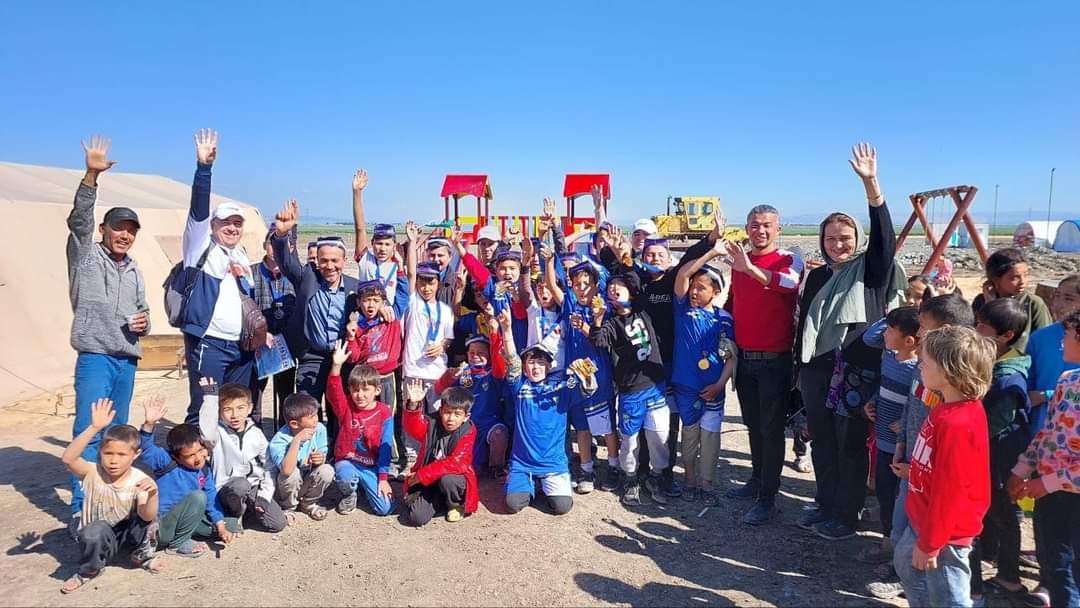 çocuklara Özbekistan’dan getirilen milli elbise, futbol forması, kitap, uçurtma ve diğer hediyeler takdim edildi.