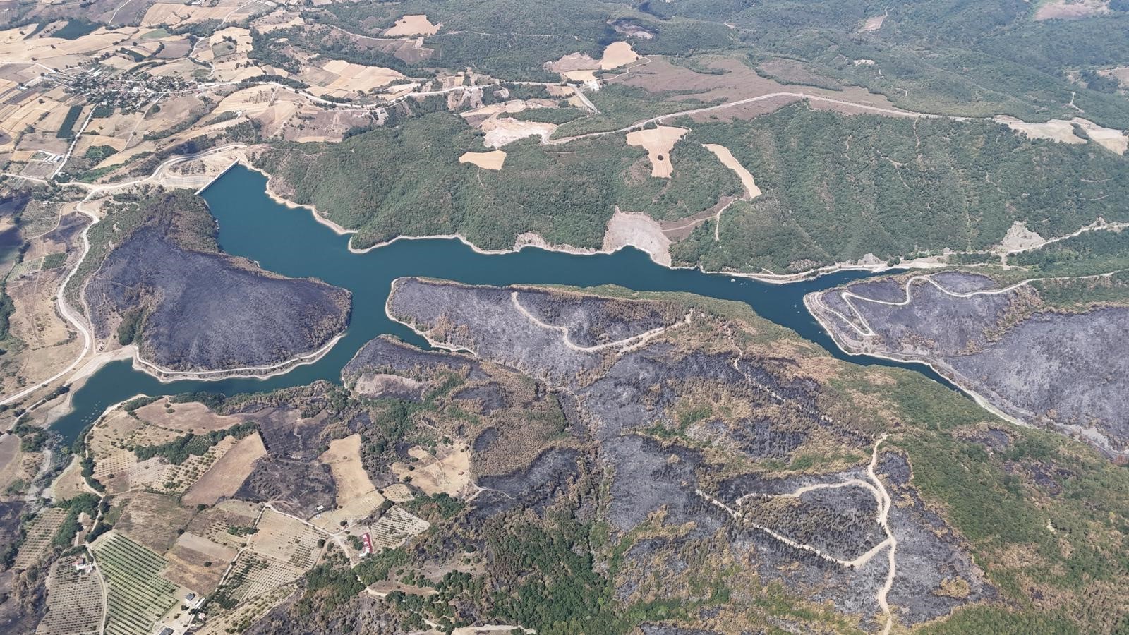 Kocaeli'nin Karamürsel ilçesinde geçtiğimiz günlerde çıkan orman yangınından geriye kalan acı manzara havadan görüntülendi.