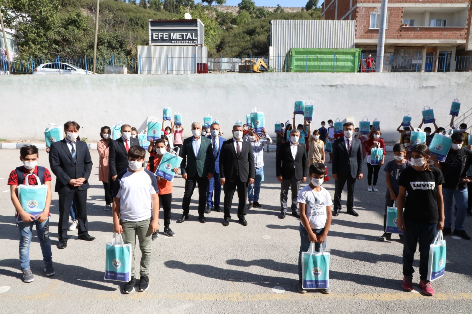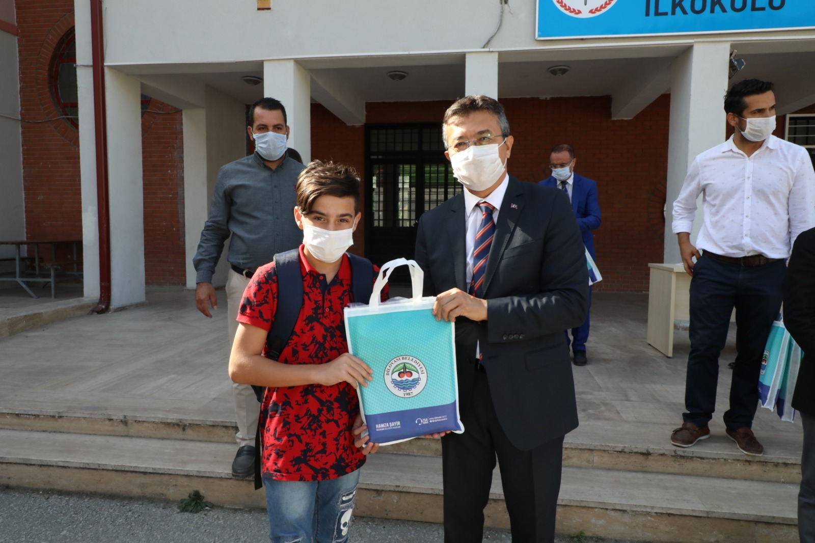 Konuşmaların ardından öğrencilere kırtasiye malzemelerinin olduğu paketler dağıtıldı.