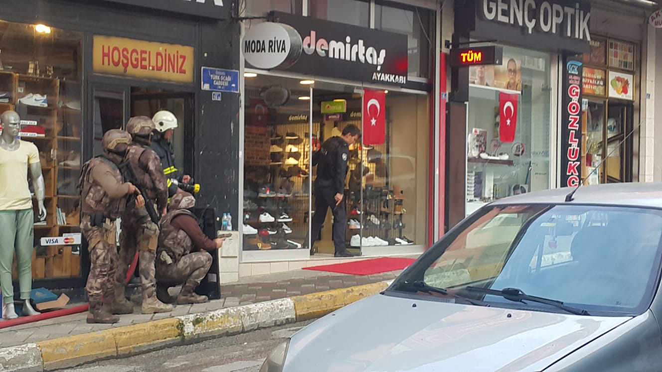 Şüphelinin kendisini iş yerine kapatması üzerine olay yerine polis ve özel harekat ekipleri sevk edildi.