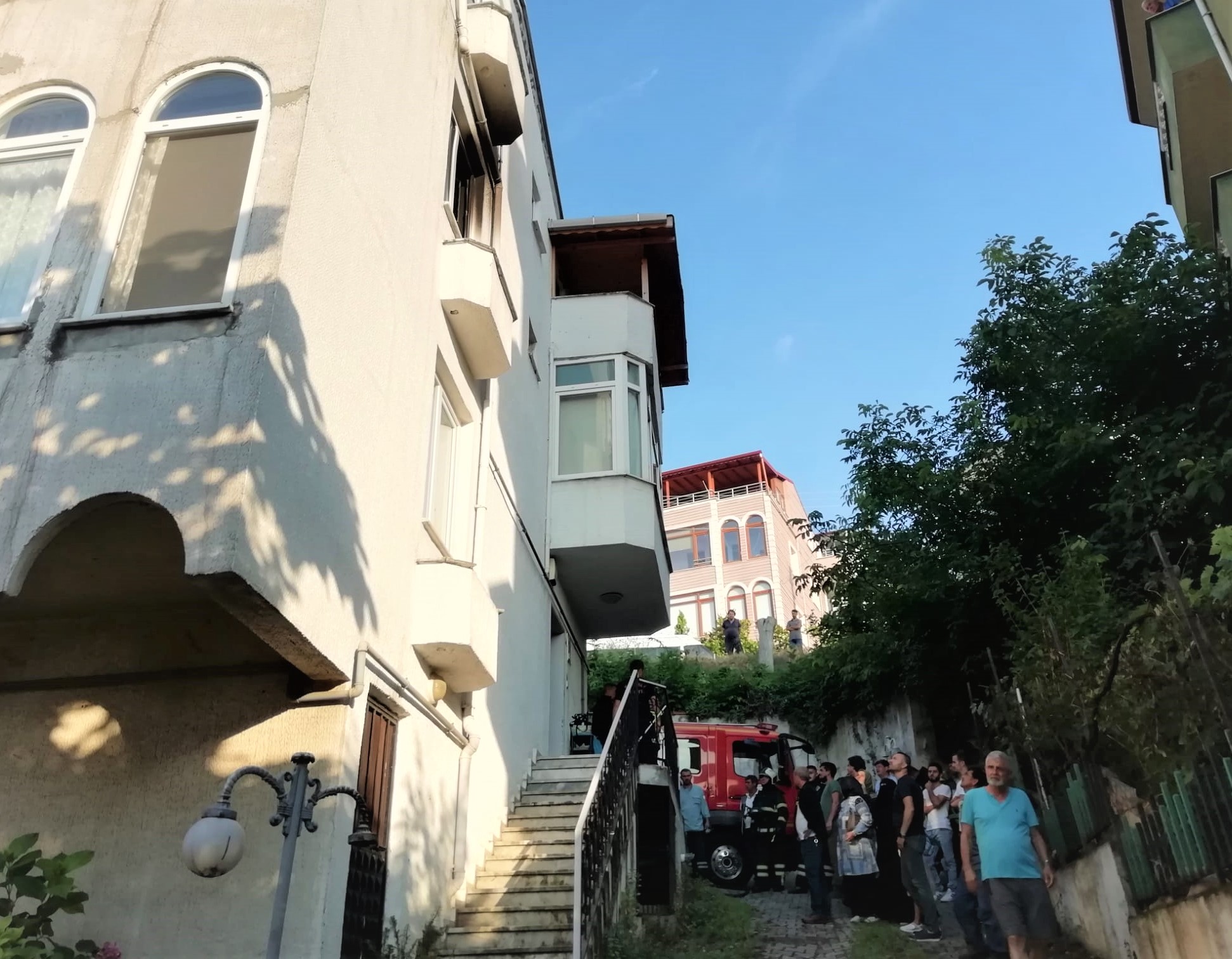 Orta katta mahsur kalan 6 kişi, yan taraftaki villanın çatı katından tahliye edildi.