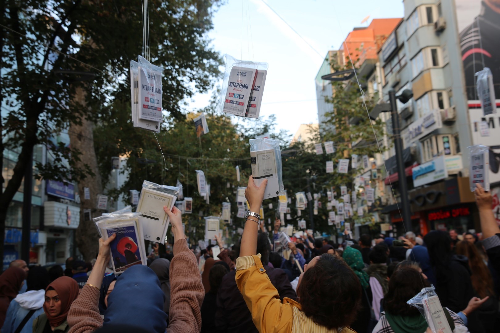 Türkiye’nin ziyaretçi sayısı, etkinlik ve katılımcı açısından en büyük kitap fuarı olan Kocaeli Büyükşehir Belediyesi’nin düzenlediği Kocaeli Kitap Fuarı, 13. kez kapılarını açmaya hazırlanıyor. Kocaeli Kitap Fuarı, 7-15 Ekim tarihleri arasında Kocaeli Kongre Merkezi'nde 390'ın üzerinde yayınevi, sahaf ve STK’nın yanı sıra 750’den fazla etkinlikle kitap tutkunlarına tekrar "merhaba" diyecek. Kitap fuarı öncesinde bugün Cumhuriyet Bulvarı'ndaki tarihi çınar ağaçları kitaplarla süslendi. Ağaçlara asılan 5 bin kitap, vatandaşlar tarafından çok kısa sürede toplandı. Küçükten büyüğe çok sayıda kitapseverin katıldığı etkinlikte vatandaşlar sevdiği kitapları toplarken renkli görüntüler oluştu.