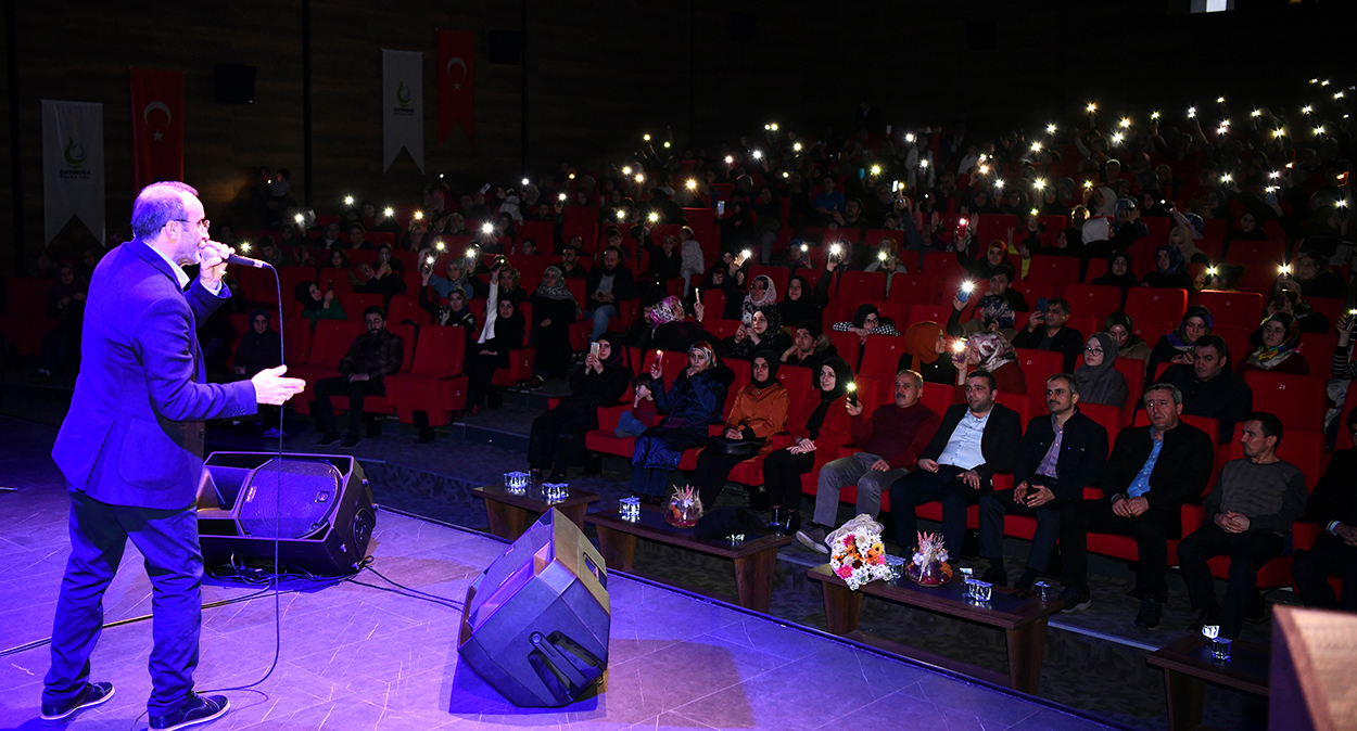 Belediye Başkanı Bünyamin Çiftçi’nin selamlama konuşmasının ardından sahne alan ezgi sanatçısı Ömer Karaoğlu, öncelikle programın düzenlenmesine vesile olan Belediye Başkanı Bünyamin Çiftçi’ye teşekkürlerini iletti. Kısa bir konuşmanın ardından ezgilerini seslendirmeye başlayan Karaoğlu’na salonu dolduran vatandaşlar da eşlik etti. Kudüs, Kuşlar, Meryem, Adı İçin Yaşamak gibi birçok eserini seslendiren Ömer Karaoğlu, gecenin kapanışını Şehit Türküsü ile yaptı.