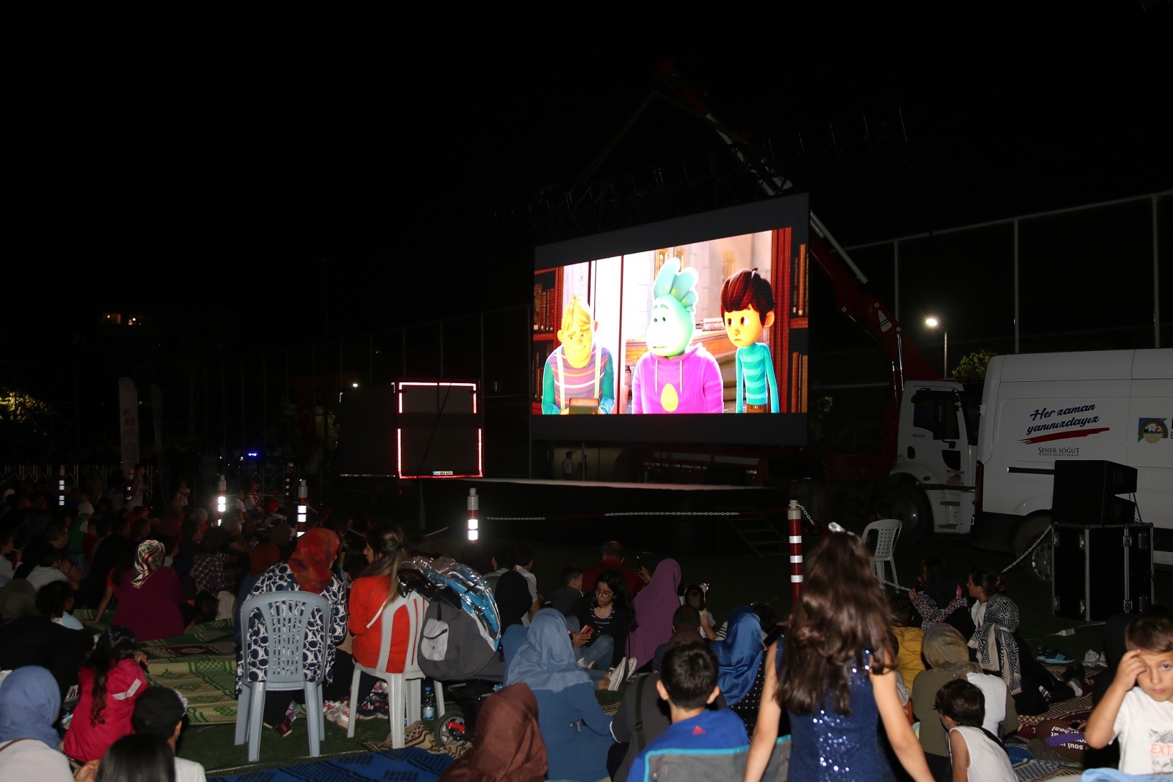 Alparslan Türkeş Spor Kompleksi'ndeki sahada gerçekleştirilen ve yaklaşık 3 bin kişinin katıldığı etkinlikte 'Rafadan Tayfa Galaktik Tayfa' sinema salonları dışında ilk kez gösterildi. Sahaya suni çim serilerek çocuklar için rahat bir izleme ortamı oluşturuldu. Etkinlik boyunca çocuklara ve ailelere çeşitli ikramlar yapıldı ve çocukların kahkahaları etkinlik alanında yankılandı.