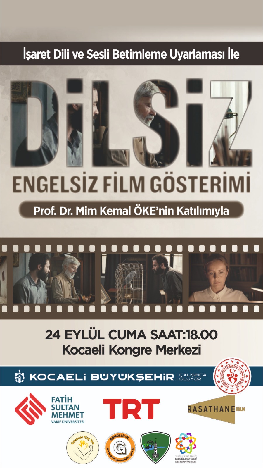 Kocaeli Büyükşehir Belediyesi Sağlık ve Sosyal Hizmetler Dairesi Başkanlığı’nın desteklediği ‘’Ellerimde Güç Var’’ projesi kapsamında düzenlenen programda STK’lar, ilgili kamu ve kuruluşlar, gönüllü öğrenciler, işitme engelli ve görme engelli bireyler bir araya gelecek. Filmin sesli betimleme ve işaret dili çevirisini Fatih Sultan Mehmet Üniversitesi’nde görev yapan akademisyenler üstlendi. Filmin gösteriminin ardından oyuncu Mim Kemal Öke ile film üstüne bir de söyleşi yapılacak.