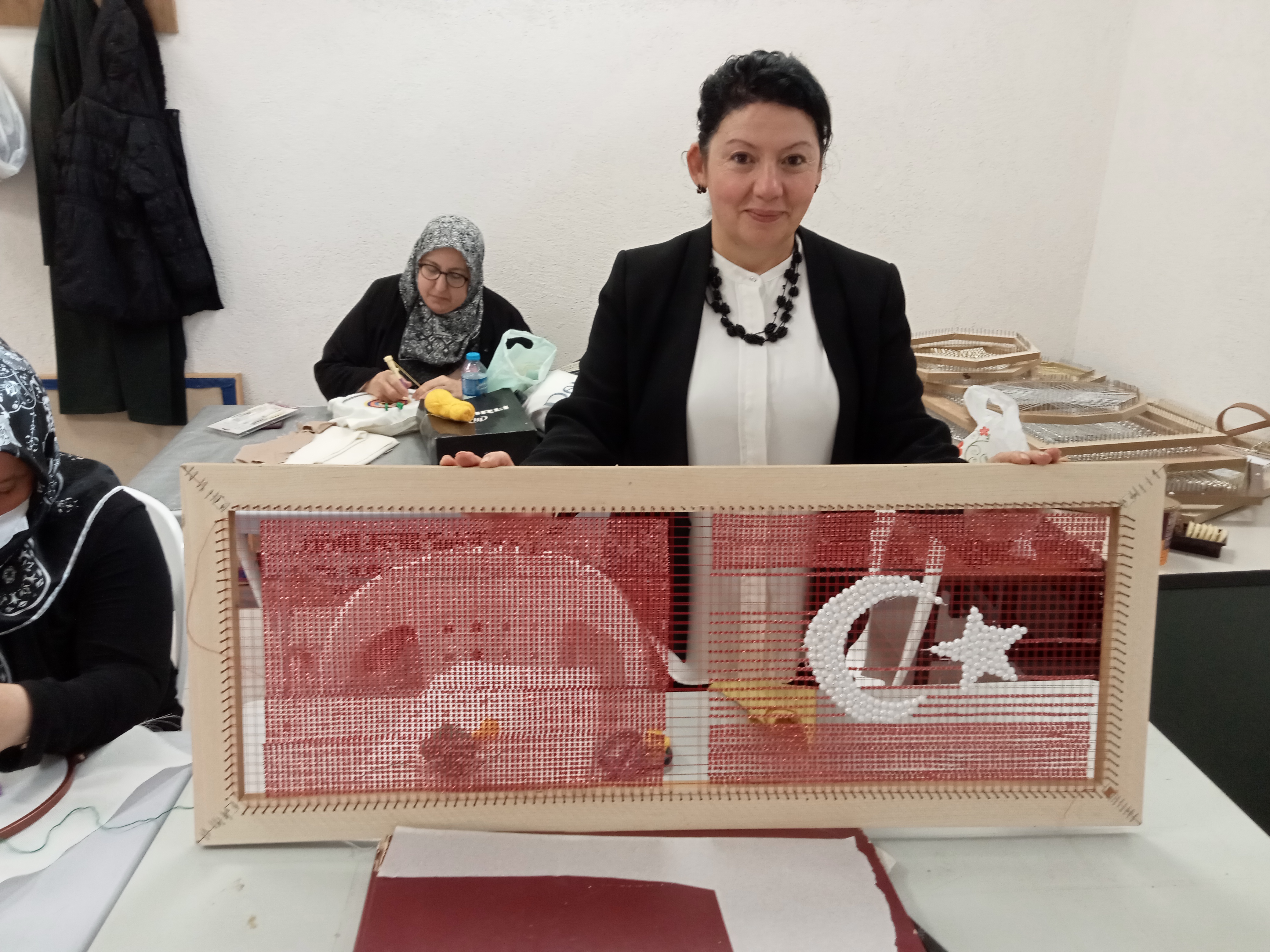 Kursla ilgili bilgi veren Temiz, kursiyerlerin başarılı çalışmayla kısa sürede el becerilerini geliştirdiğini belirterek, "Özellikle çivili kasnak üzerinde yaptıkları Türk bayrağı mükemmel eser oldu. Artık yaptıkları eserlere kendileri en güzel şekli verebilir hale geldiler." dedi.