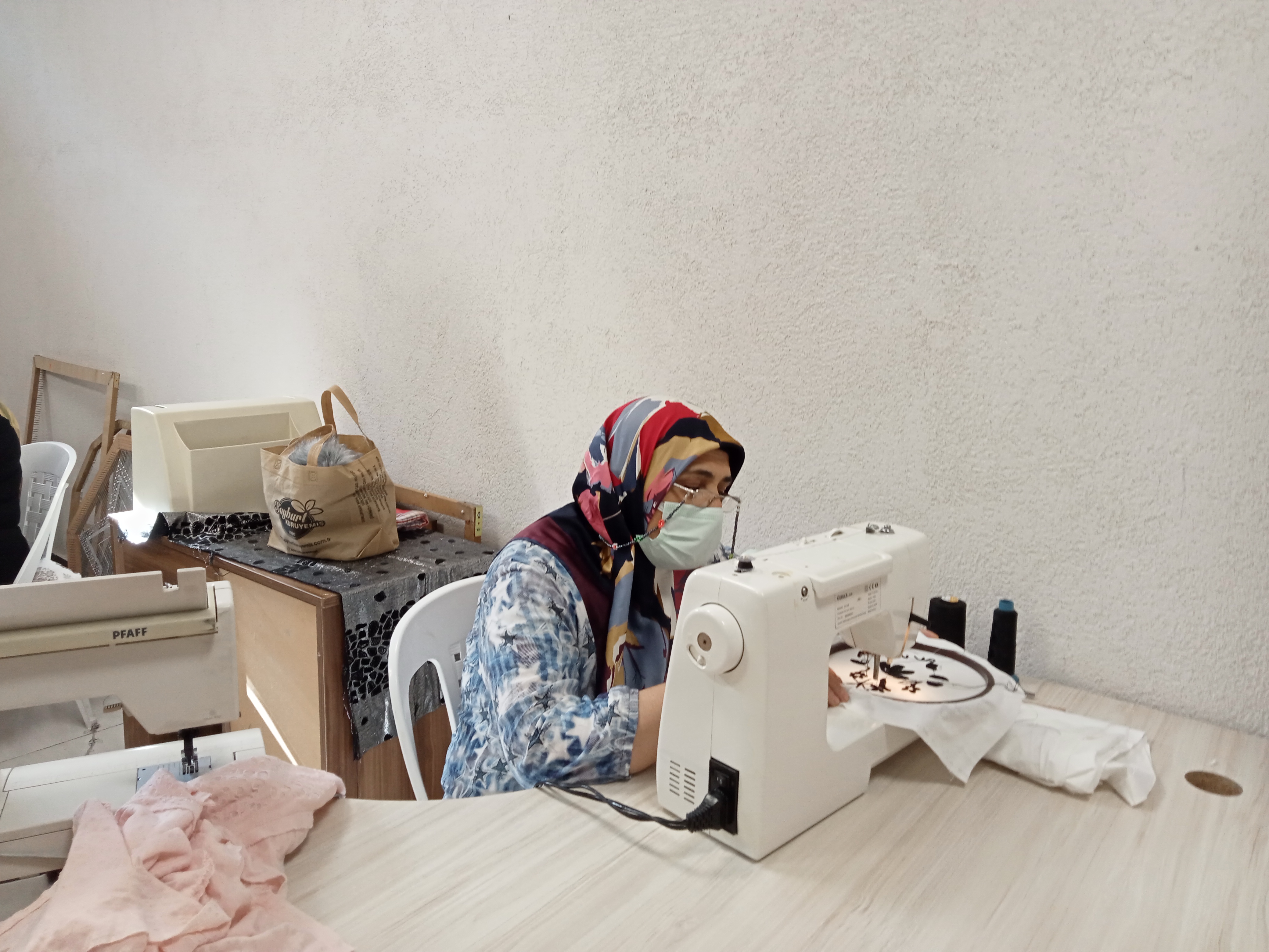 Usta öğretici Emine Temiz tarafından verilen eğitimlerde, kursiyer el becerilerini geliştiriyor.