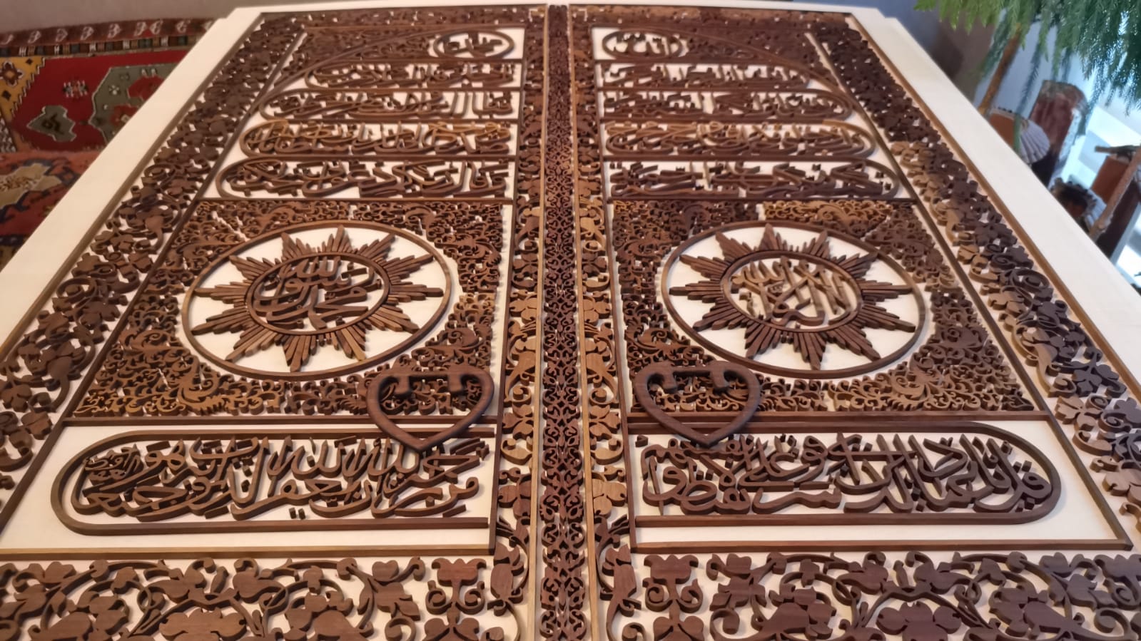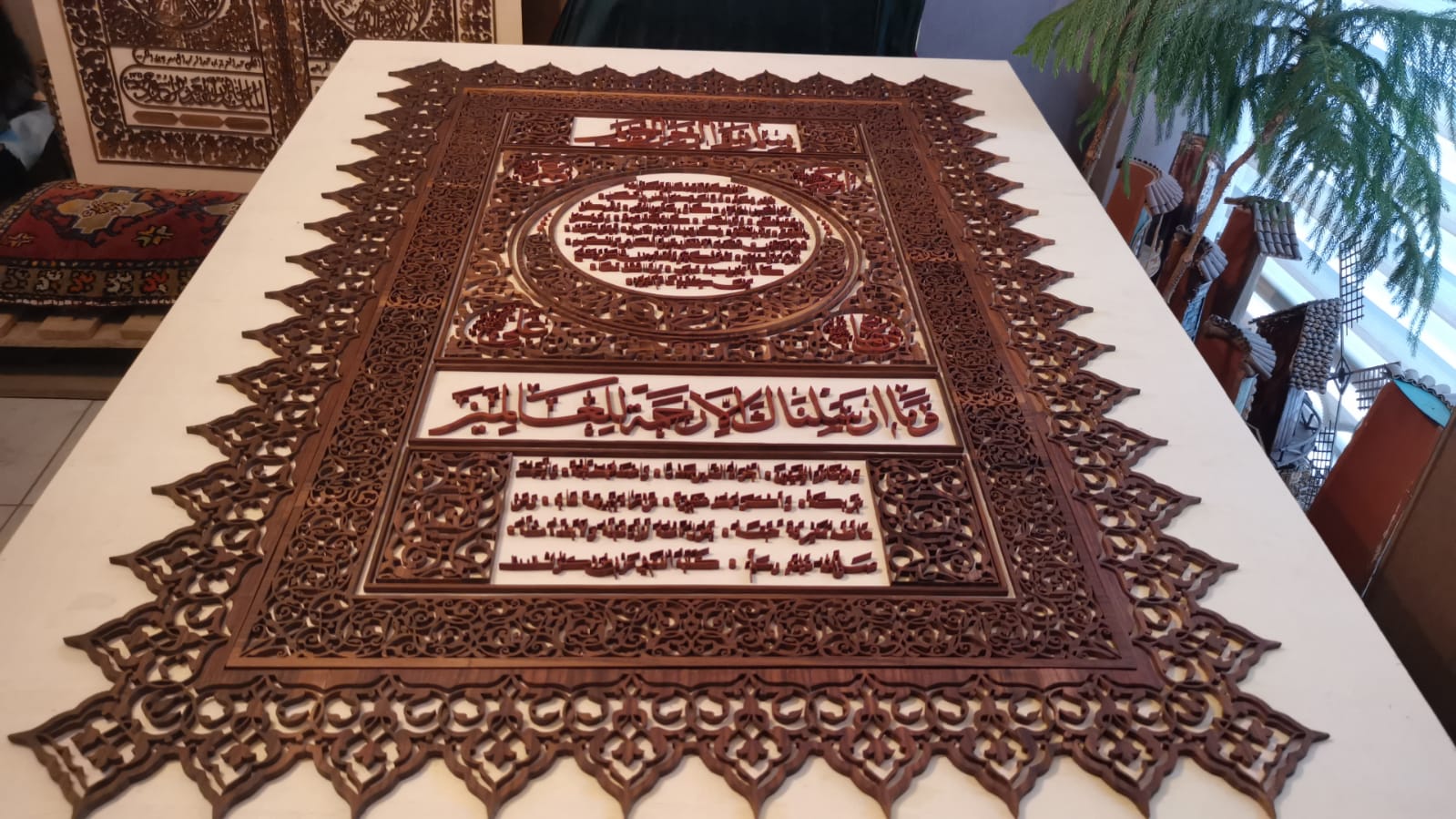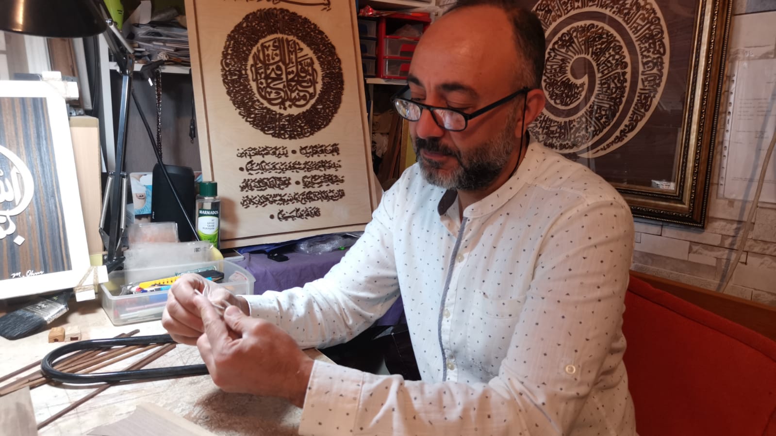 Kocaeli'nin Gebze ilçesinde naht sanatıyla çeşitli figürleri ahşaba yansıtan Muzaffer Okur, Kabe'nin altın kapısını ceviz ağacından kestiği parçalarla 2,5 ayda tabloya işledi.